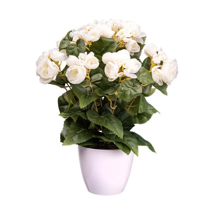 Künstliche Blume Begonie SYLINA, weißer Dekotopf, creme, 35cm