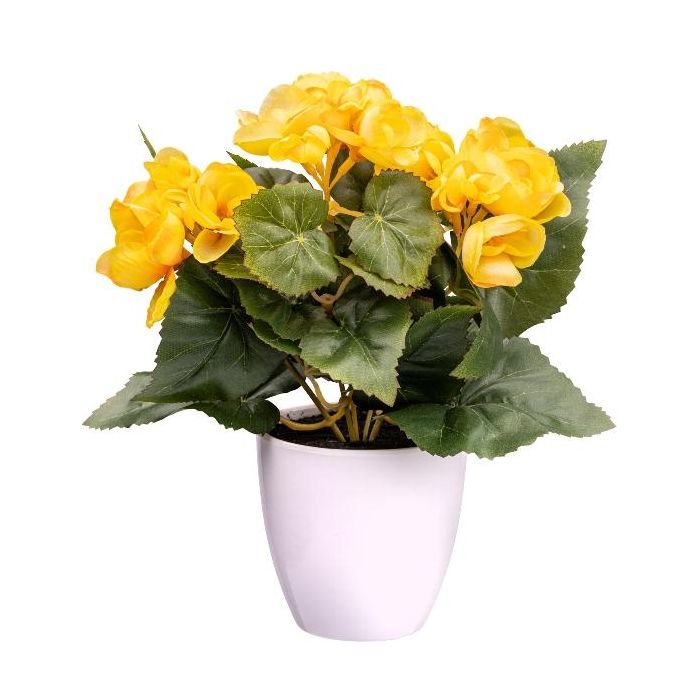 Künstliche Blume Begonie SYLINA, weißer Dekotopf, gelb, 25cm