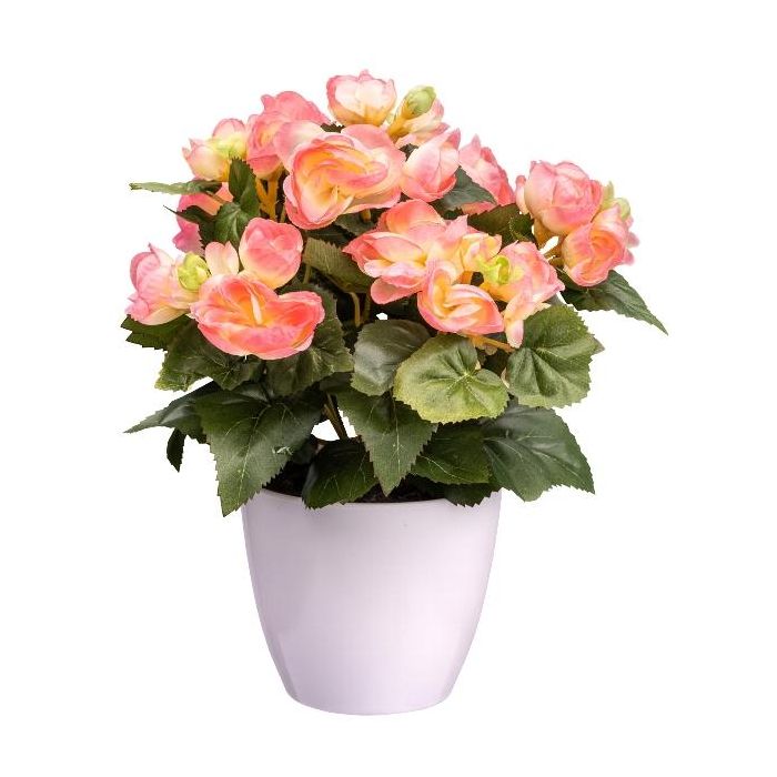 Künstliche Blume Begonie SYLINA, weißer Dekotopf, rosa, 30cm