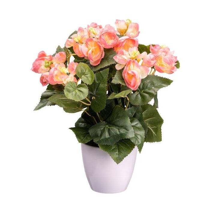 Künstliche Blume Begonie SYLINA, weißer Dekotopf, rosa, 35cm