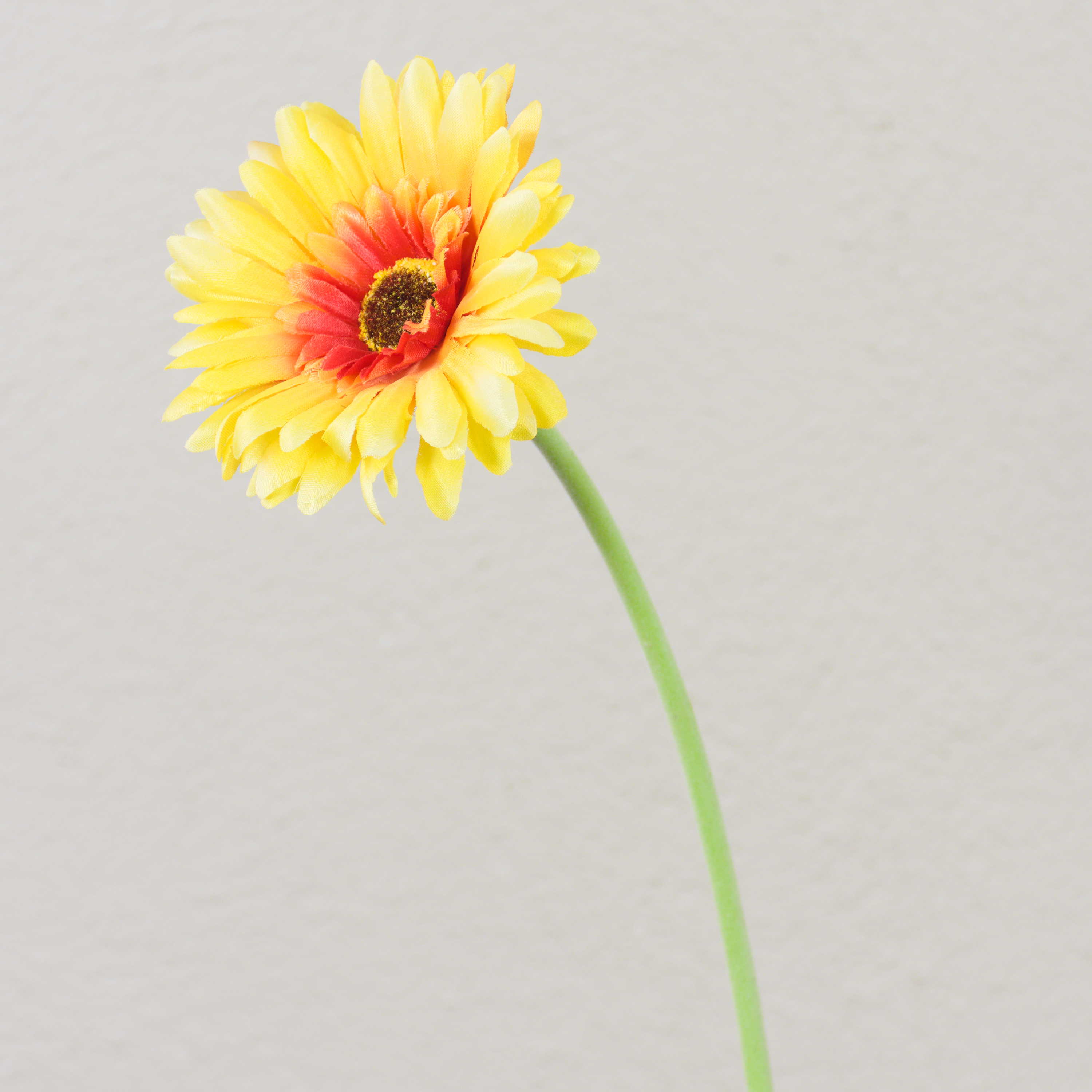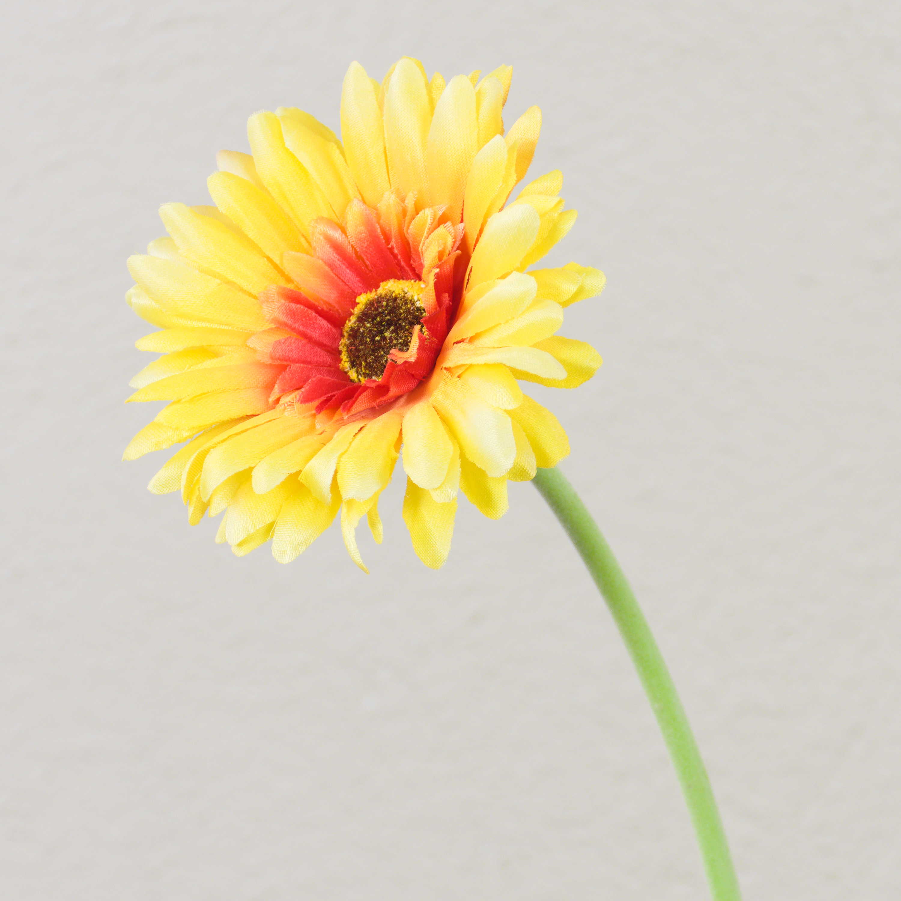 Die Plastik Gerbera TEUDELINDE steht für Sonne und Sommer, z.B. mit mehreren zu einem Strauß gebunden wird sie zu einem leuchtenden Blickfang in Ihrer Wohnung, im Restaurant oder im Büro.