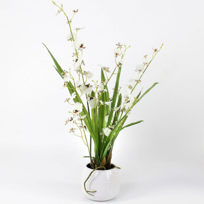 Künstliche Blume Oncidium Orchidee SHANIA, Keramiktopf, weiß-braun, 50cm