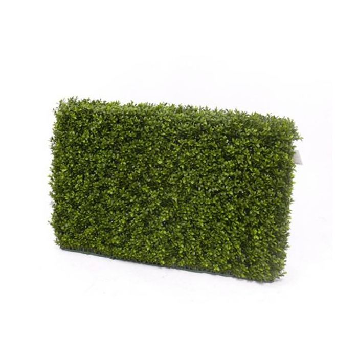 Die Künstliche Buchshecke TOM hat ca. 3130 hell und dunkelgrüne kleine Blätter auf einem Metallrahmen. Die Kunst Hecke ist mit Ihrer Breite von ca. 95 cm und einer Höhe von ca. 55 cm ein idealer Sichtschutz oder Raumteiler.