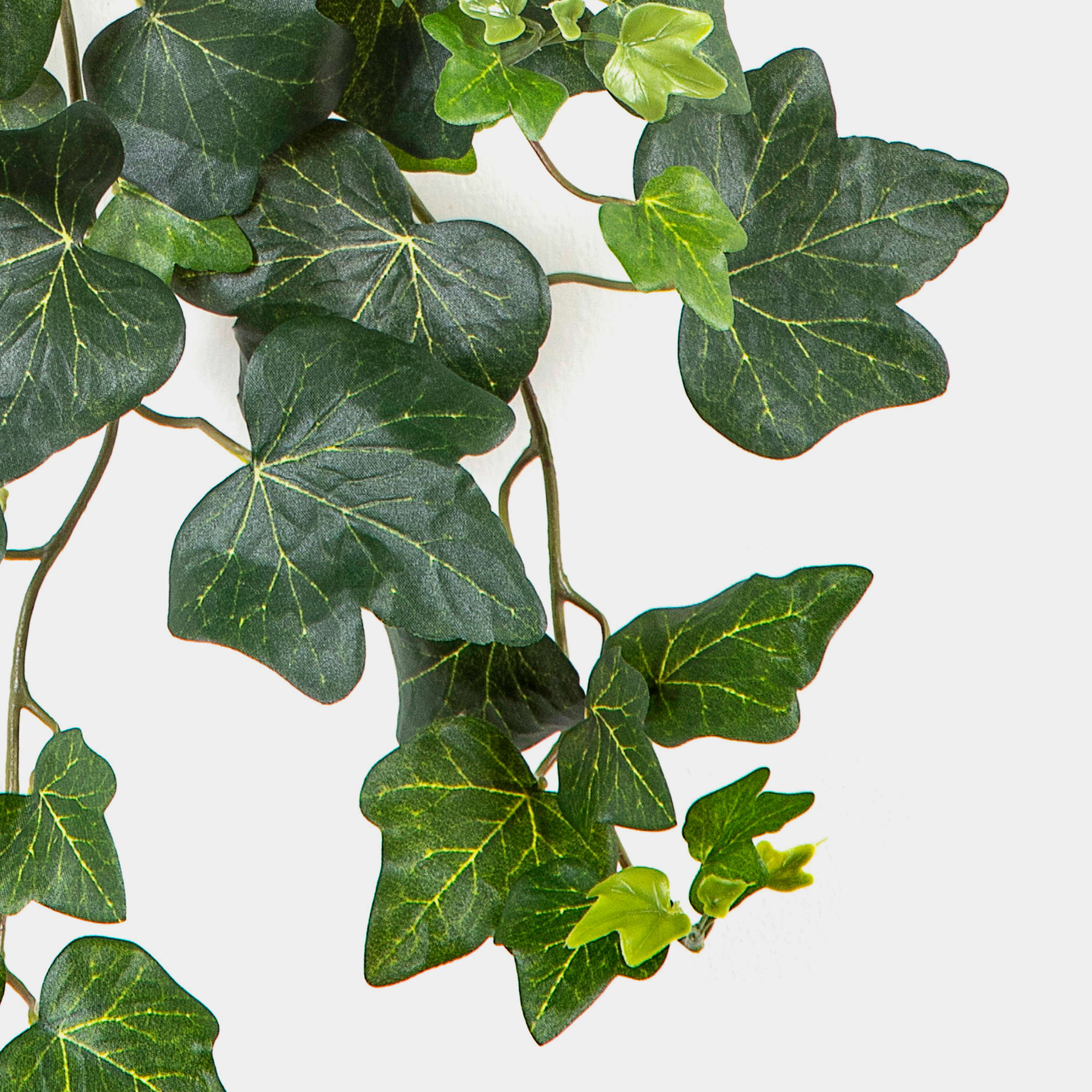 Der künstliche Efeu LINNEO wird z.B. in einer Blumenampel befestigt zu einem ausgezeichneten Hingucker in Ihrem Wohnzimmer, im Treppenhaus oder im Eingang.