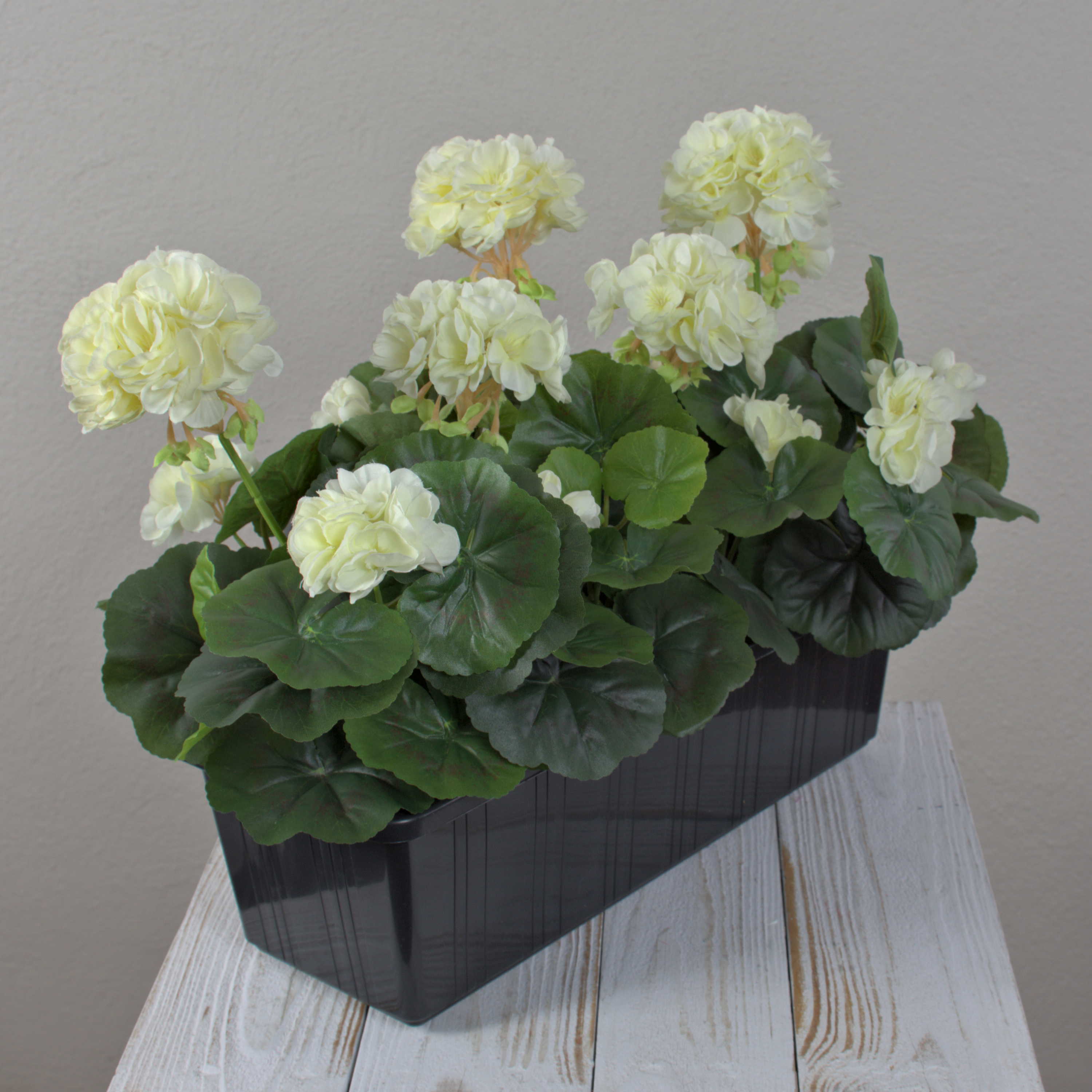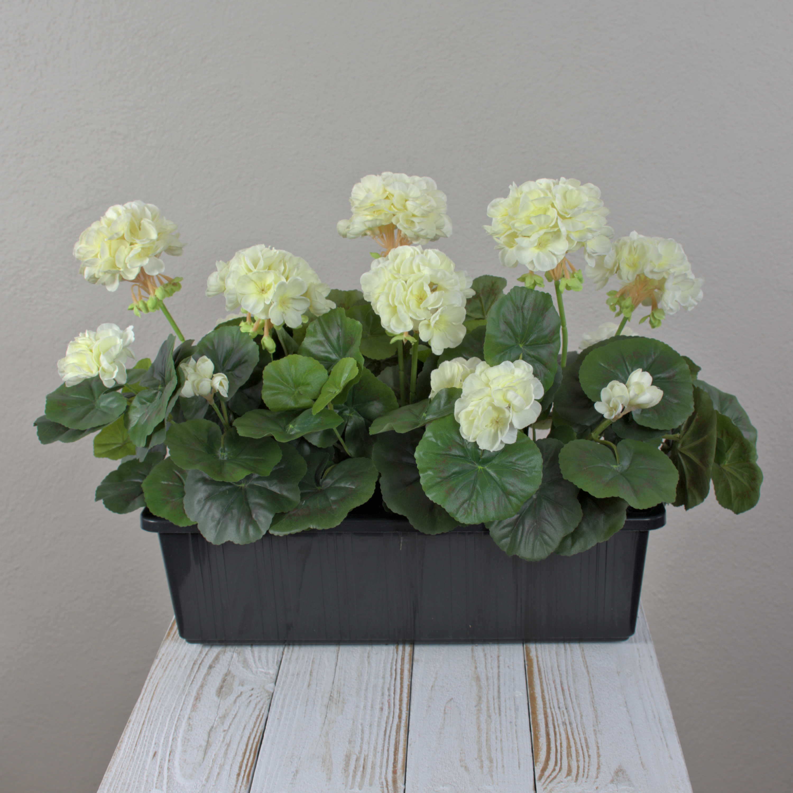 Künstliche Geranien FLOREANA im Blumenkasten, 3 Stück, weiß, 40x15x35cm