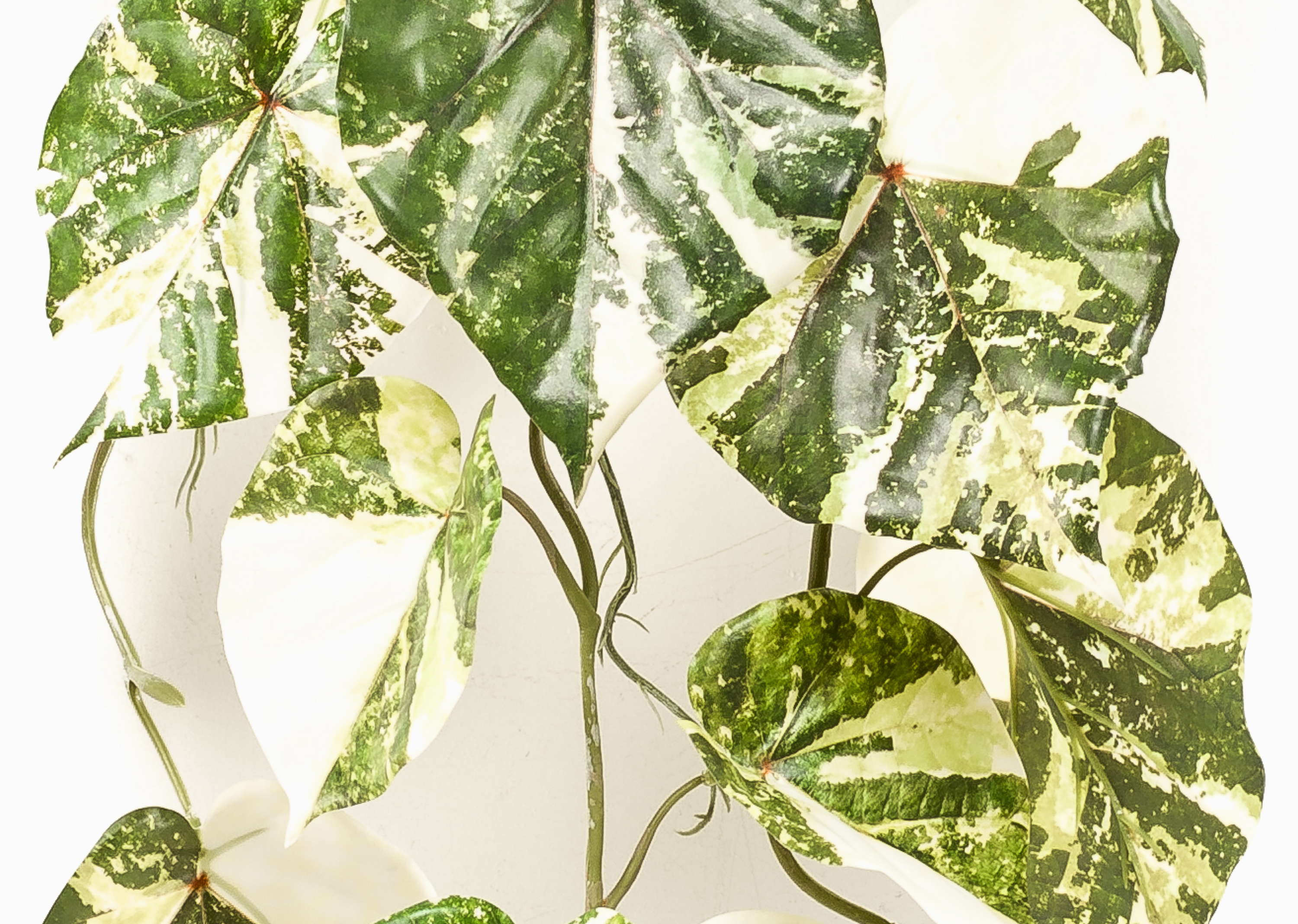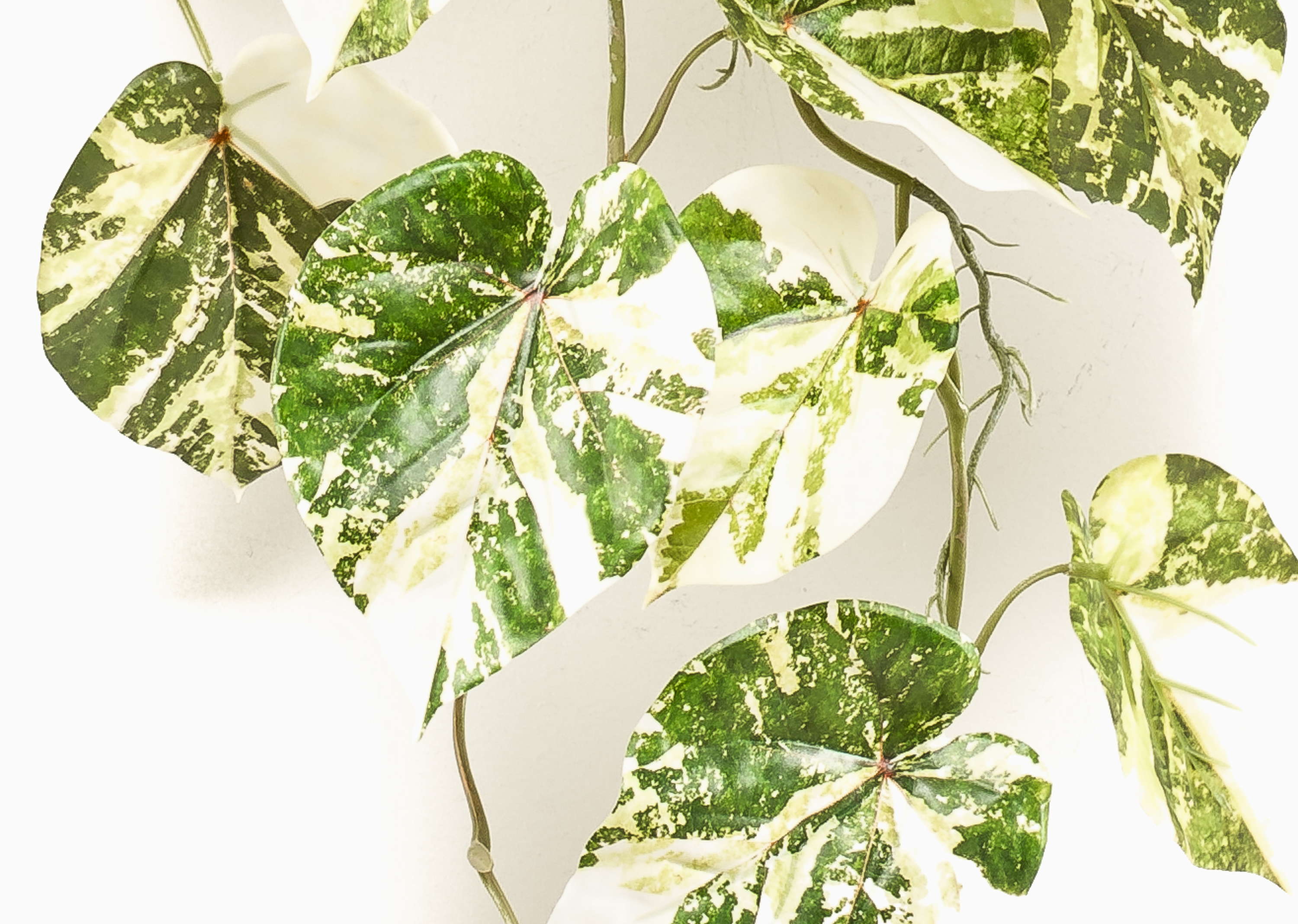 | Merkmale | hängend, nur Blätter, panaschiert |