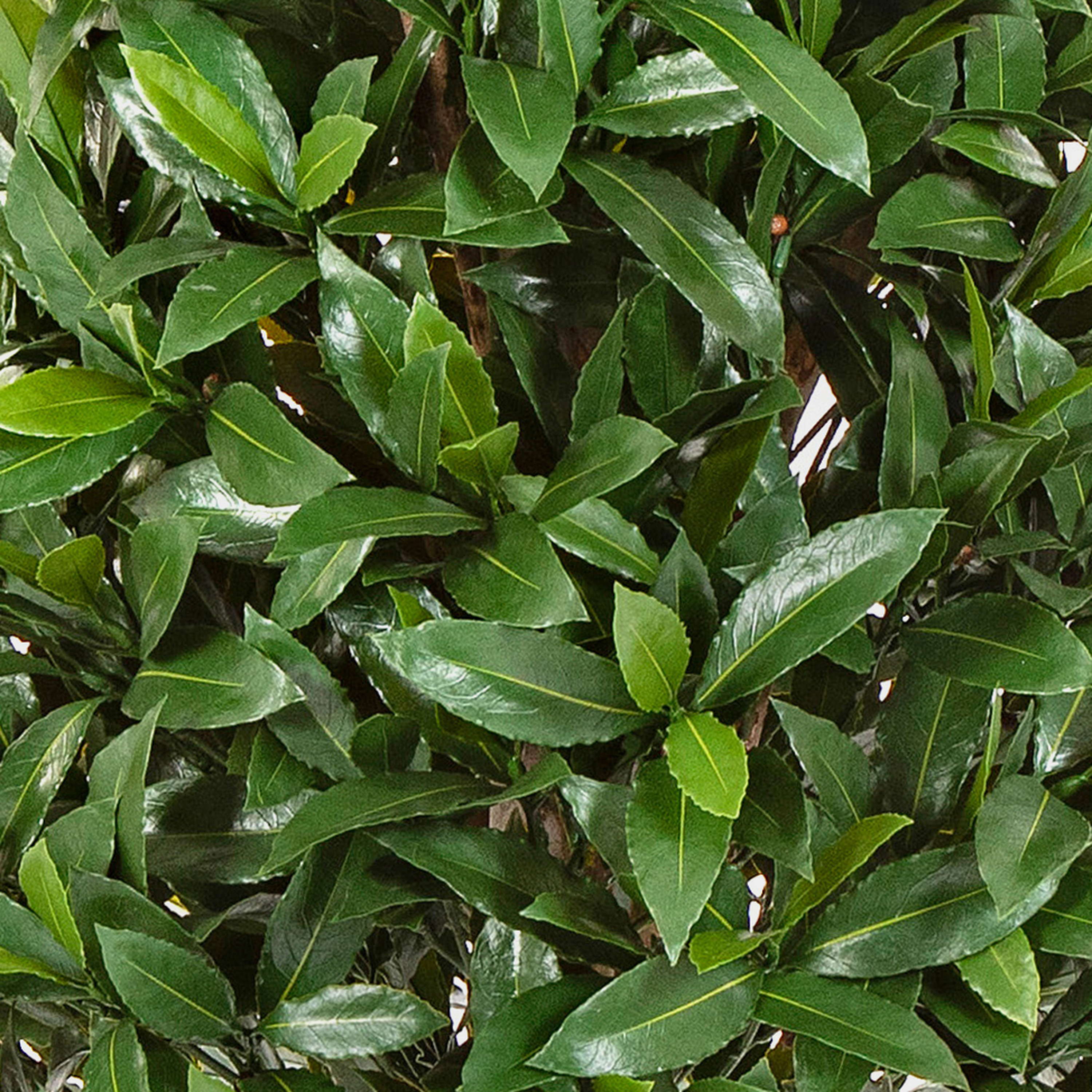 Künstlicher Lorbeer MATAR, in Farbe grün. Das Lorbeergewächs mit hübschen Formschnitt macht sich besonders gut in einem großen Pflanzkübel.