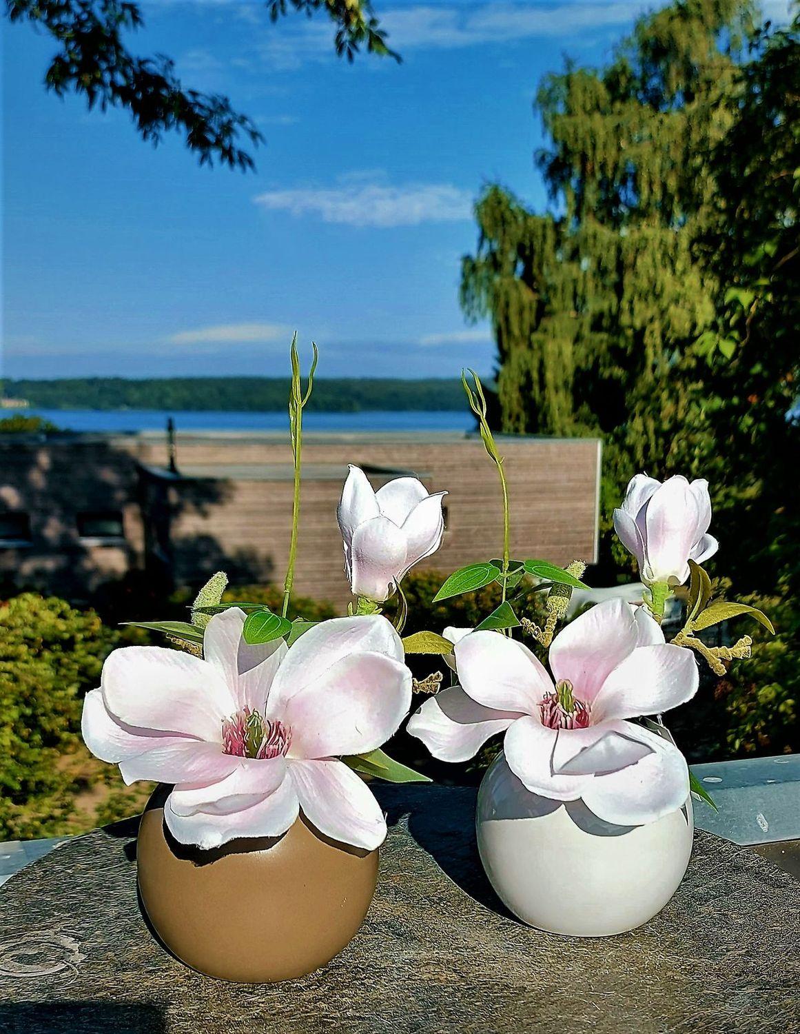 Künstliche Magnolie FEMI im beigen Keramiktopf, zartrosa, 20cm, Ø17cm