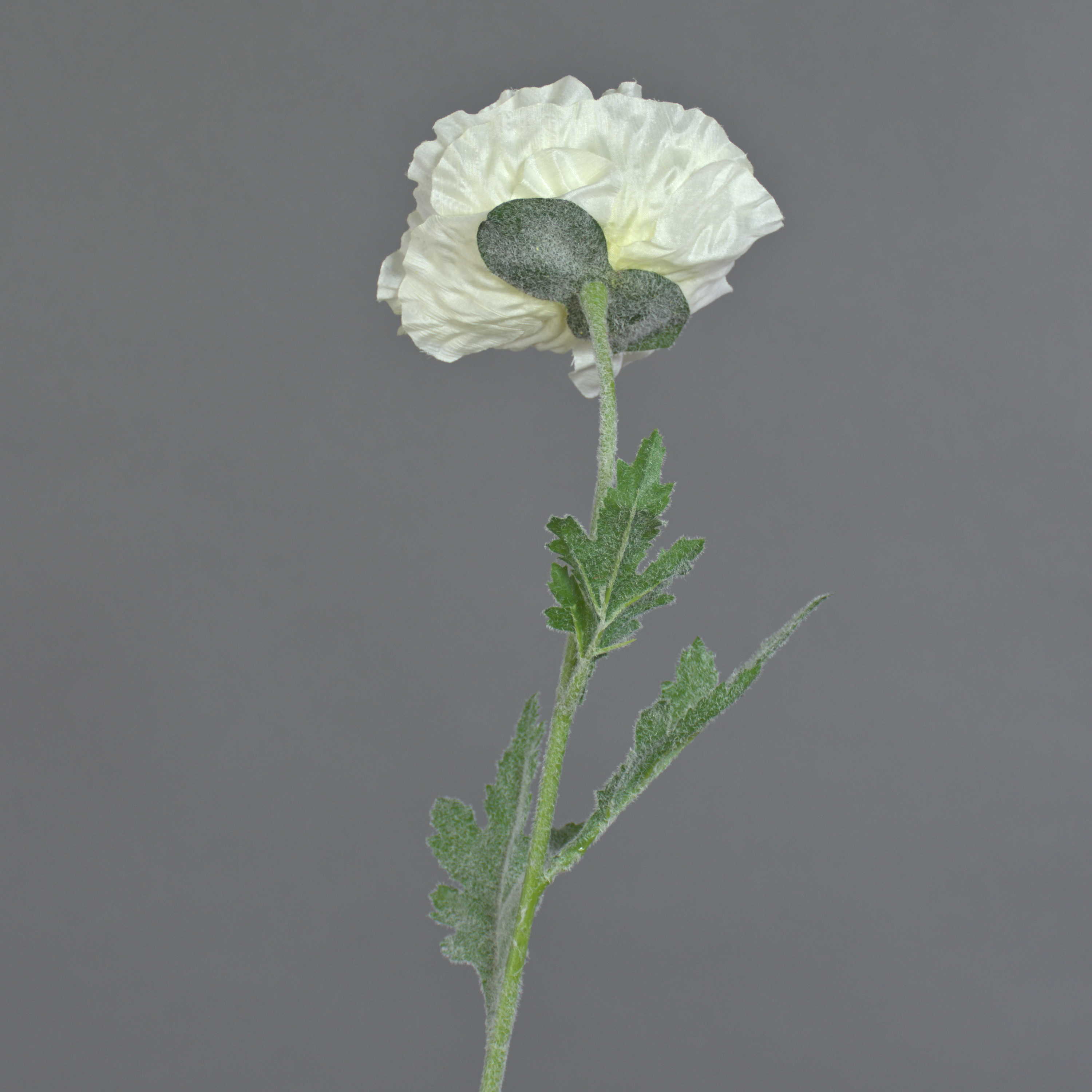 Kunstblume Mohnblume mit offener Blüte und Blätter aus Textilmaterial