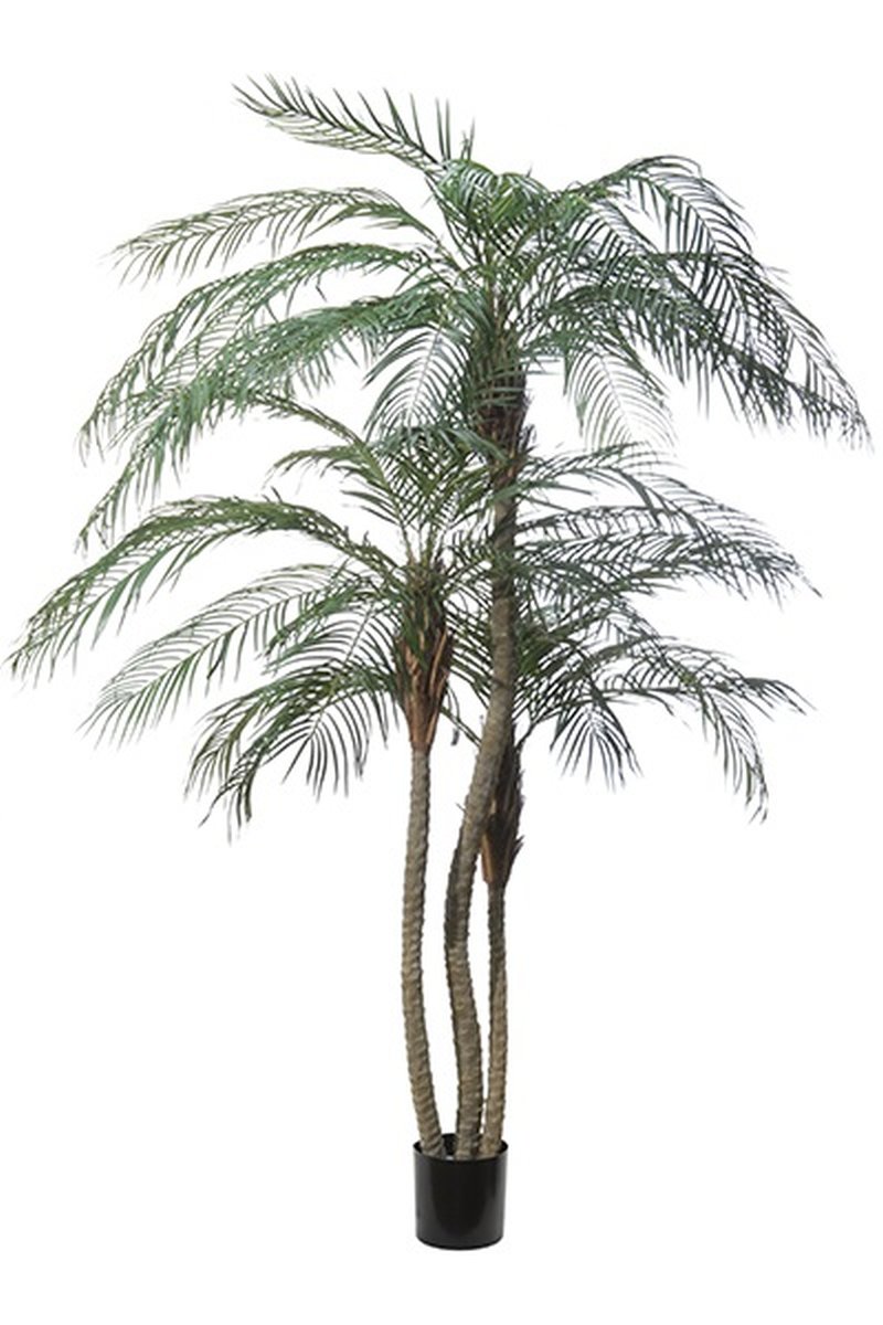 - Die ca. 3 natürlich aussehenden Stämme haben unterschiedliche Längen, an den Spitzen sitzen die gefiederten Palmwedel