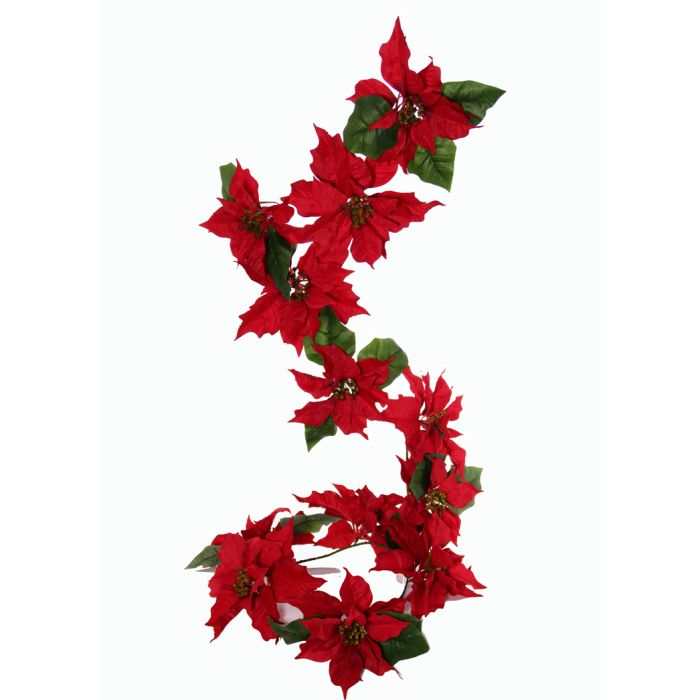 Künstliche Poinsettia Girlande TISHA, rot, 180cm, Ø18-23cm