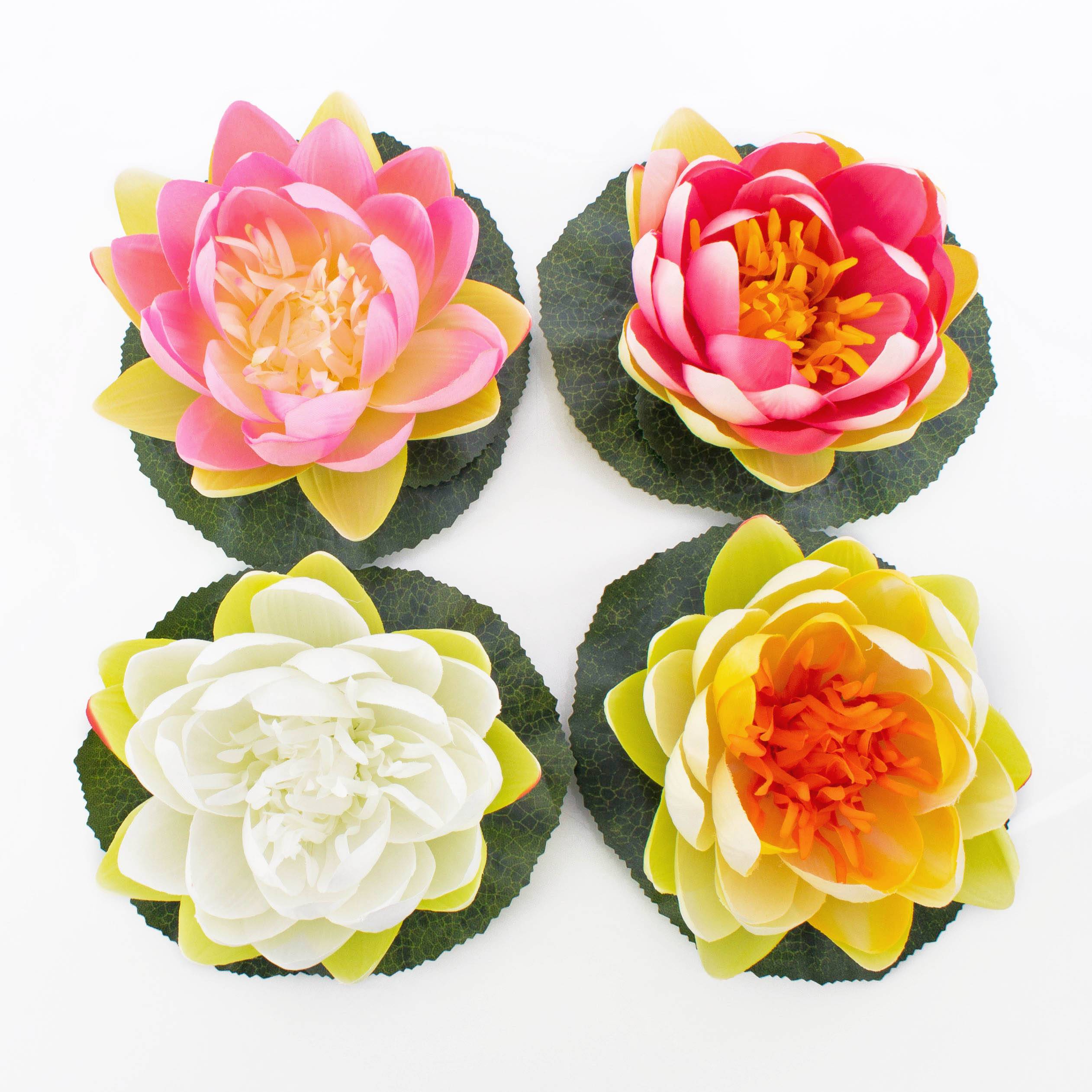 - Arrangieren Sie die Deko Seerose zusammen mit Schwimmkerzen in Wasserschalen, Zimmerbrunnen o. ä. und setzen so einen asiatischen Akzent in Ihrem Wohnzimmer oder am Büfett im Hotel