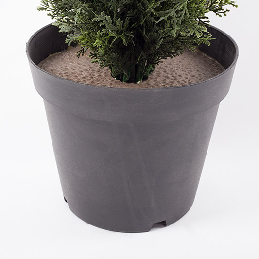 Künstlicher Zeder im Zementtopf. Der Textil Zeder ist ca. 180cm hoch.