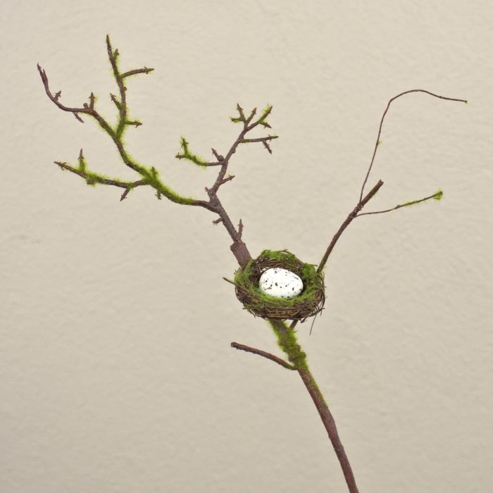 - Der Zweig mit Vogelnest ist eine außergewöhnliche Deko für den Frühling, in einem Übertopf mit Steckschwamm befestigt wird er garantiert zu einem schönen Blickfang in Ihrer Wohnung