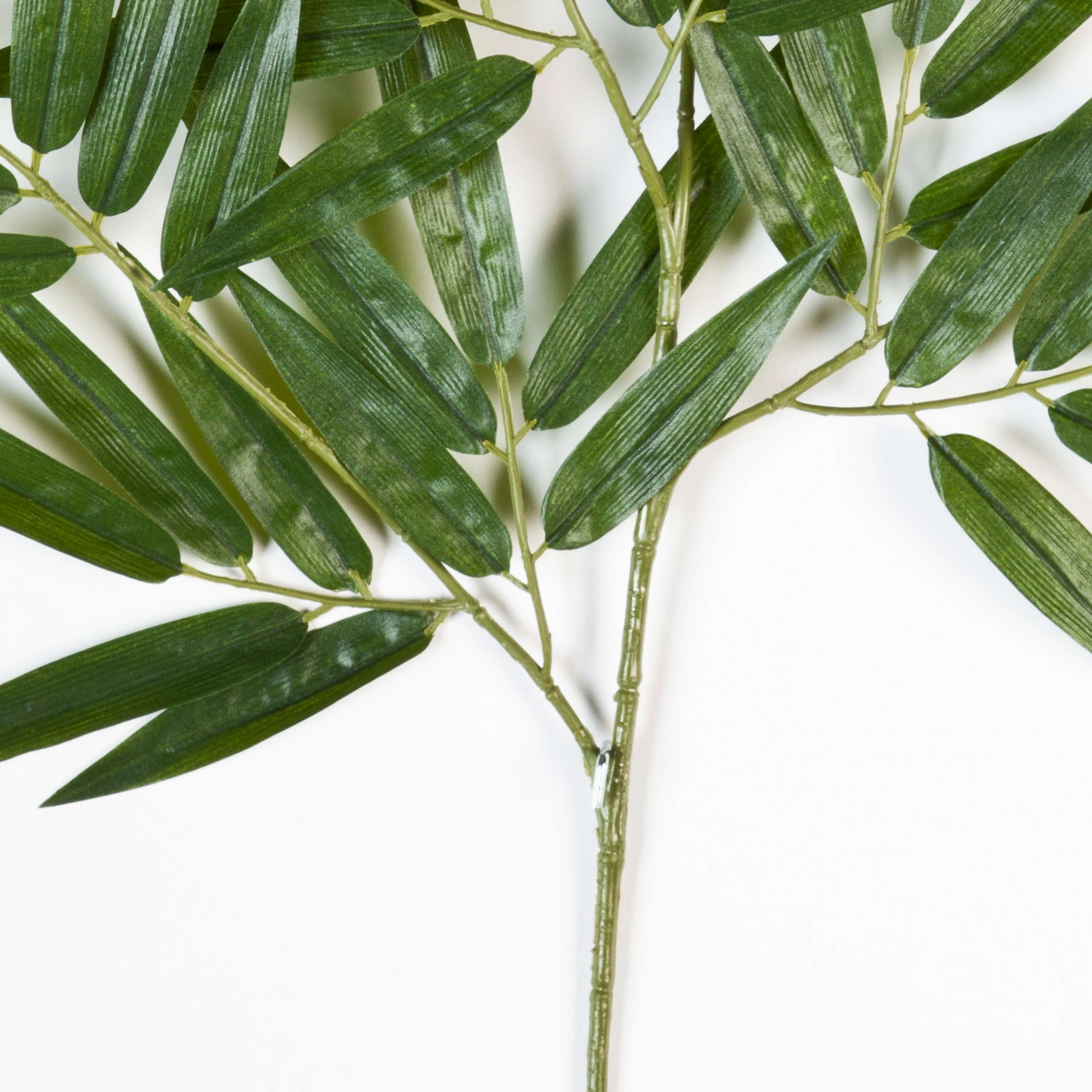 Kunststoff-Bambus-Zweig BENJIRO eignet sich durch seine B1-Ausrüstung zusammen mit seinem naturgetreuen Aussehen gut für den öffentlichen Bereich. Die Blätter des ca. 65 cm langen, künstlichen Zweigs haben eine bambus-typische, spitze Blattform und sind filigran gearbeitet.