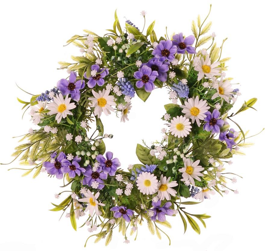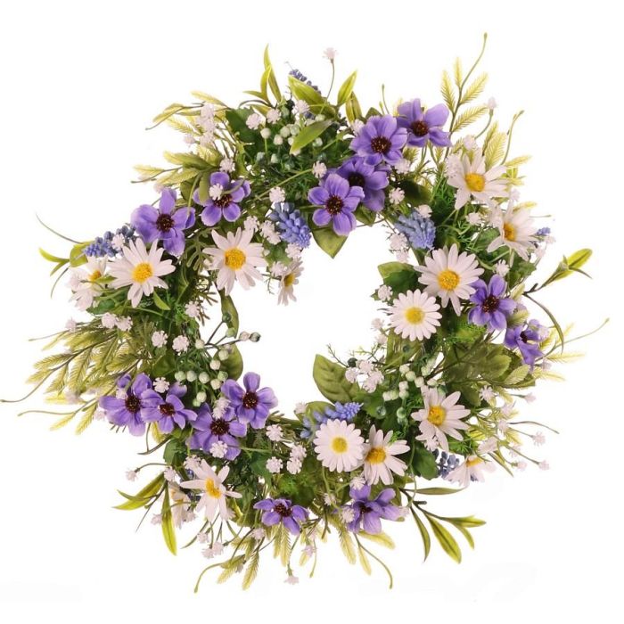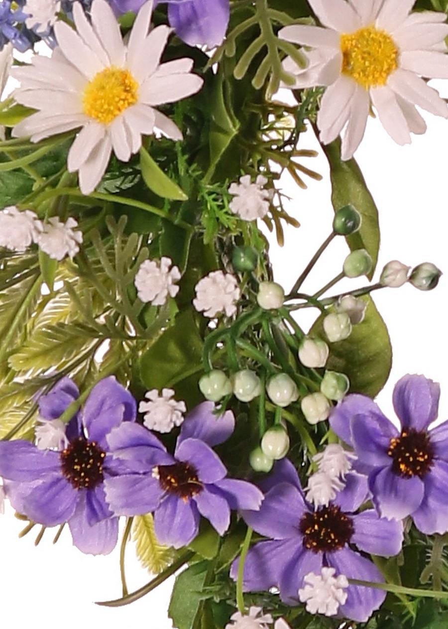 Künstlicher Blumenkranz Margerite Cosmos MAGADI, Muscari, Schleierkraut, lila-weiß, Ø30cm