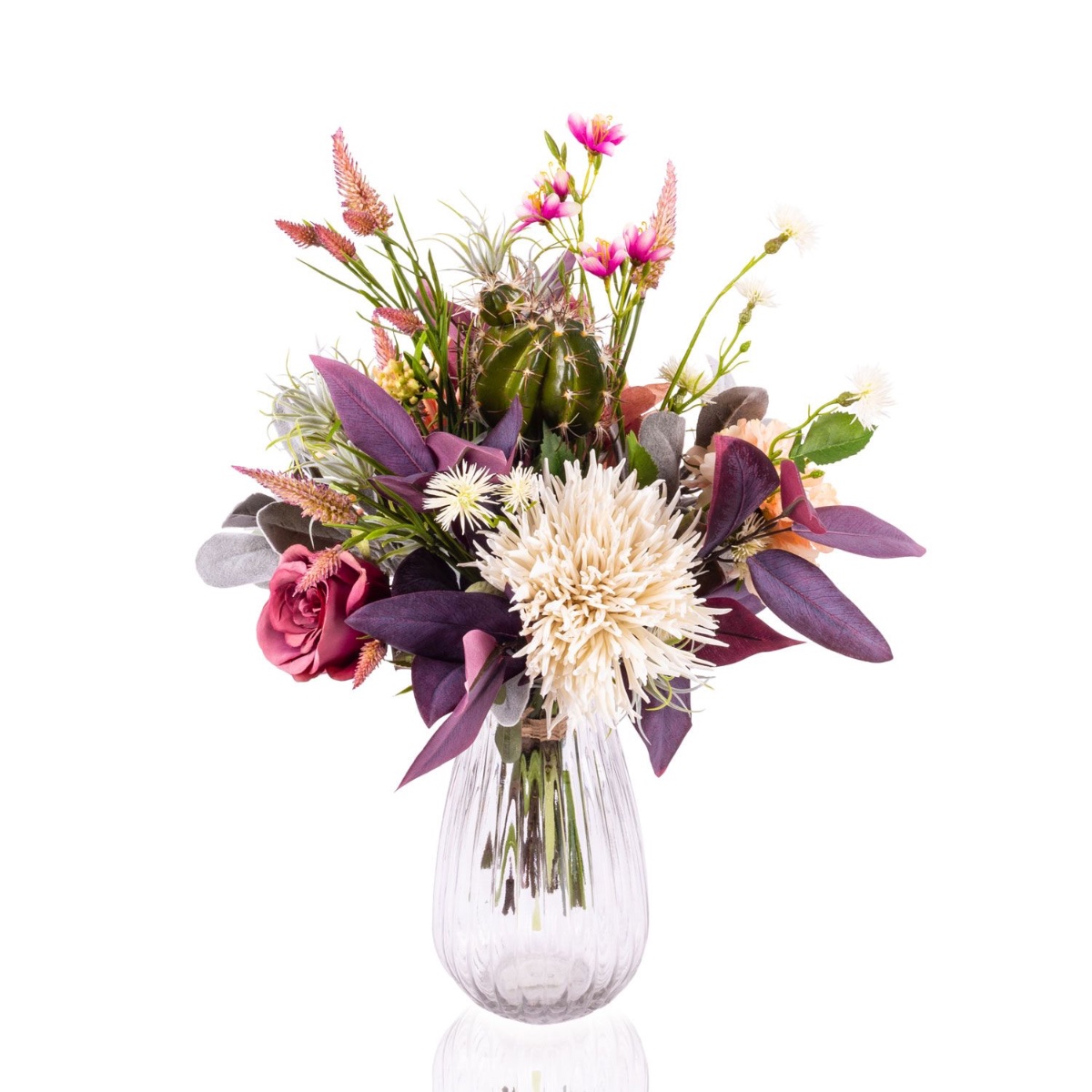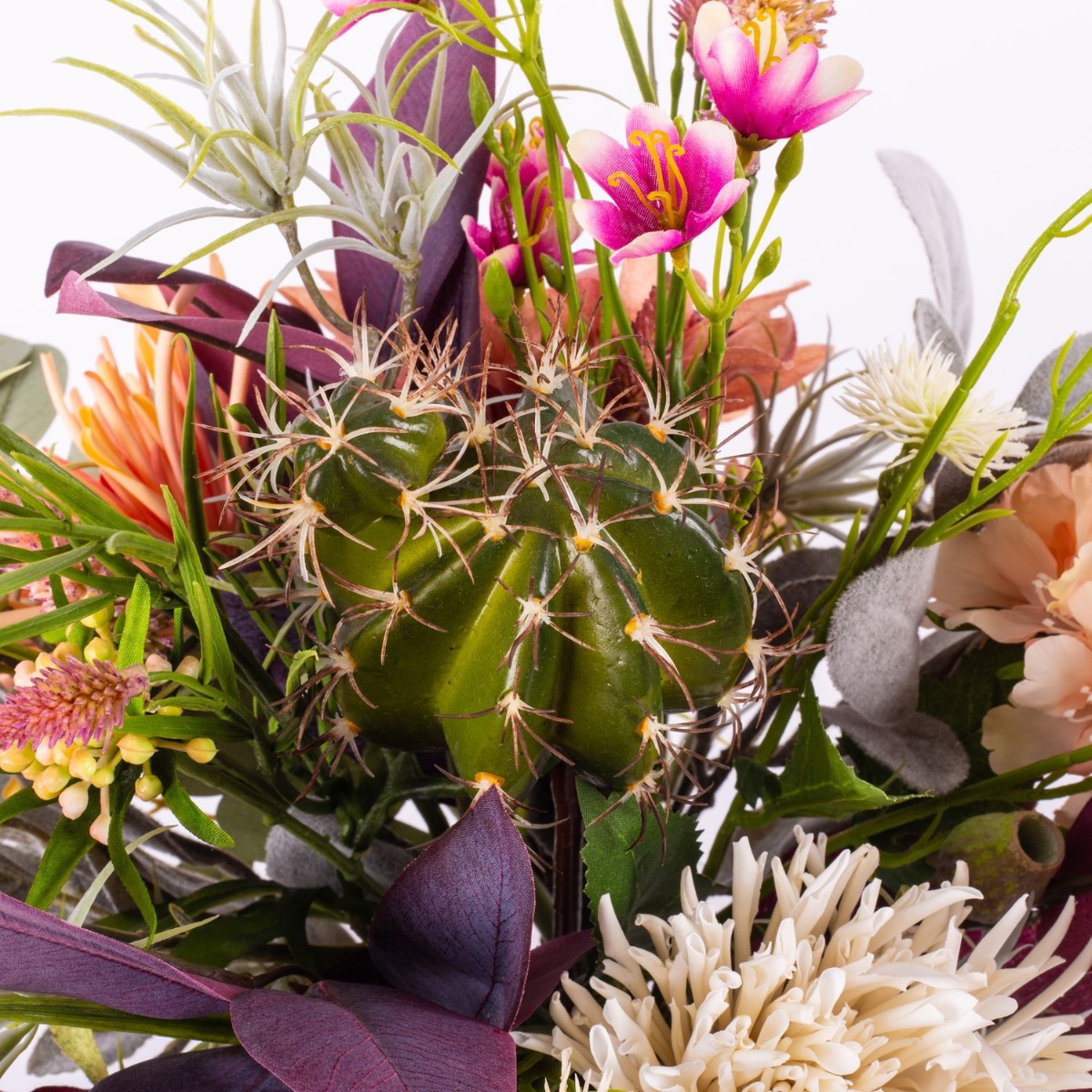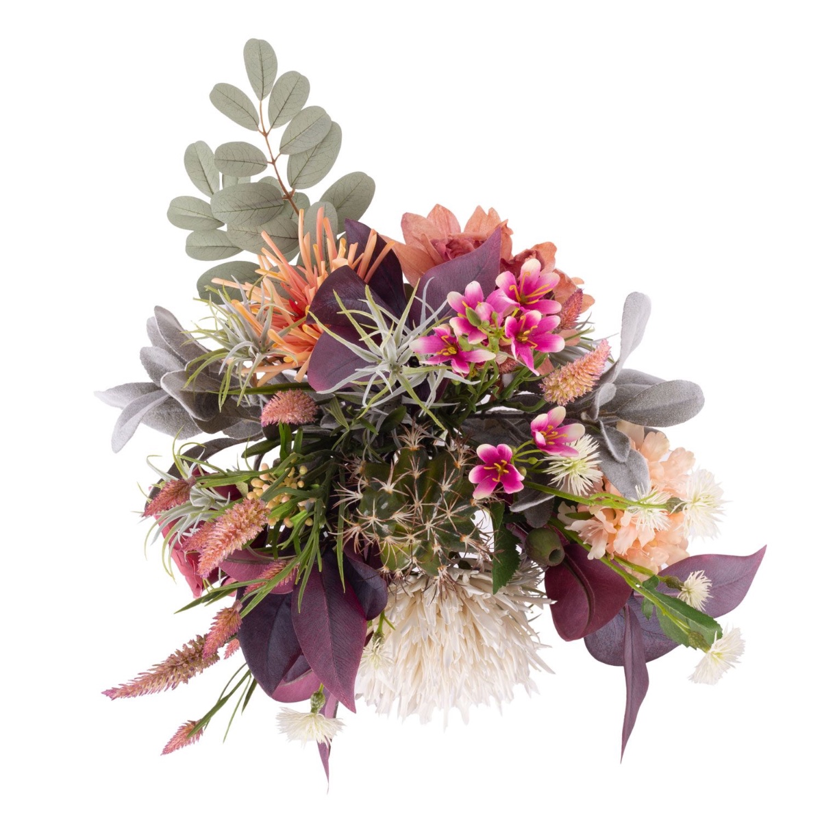 Künstlicher Blumenstrauß KALOU mit Kaktus, violett-weiß-lachs, 45cm, Ø35cm