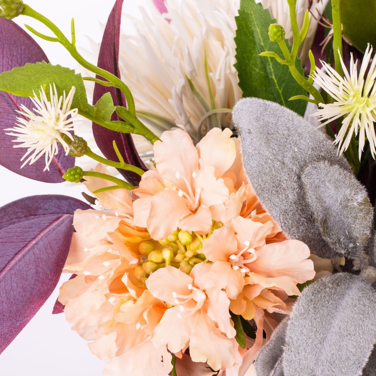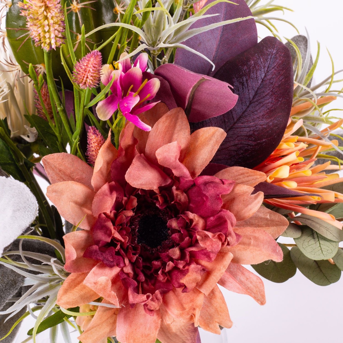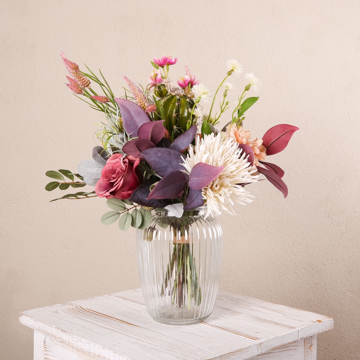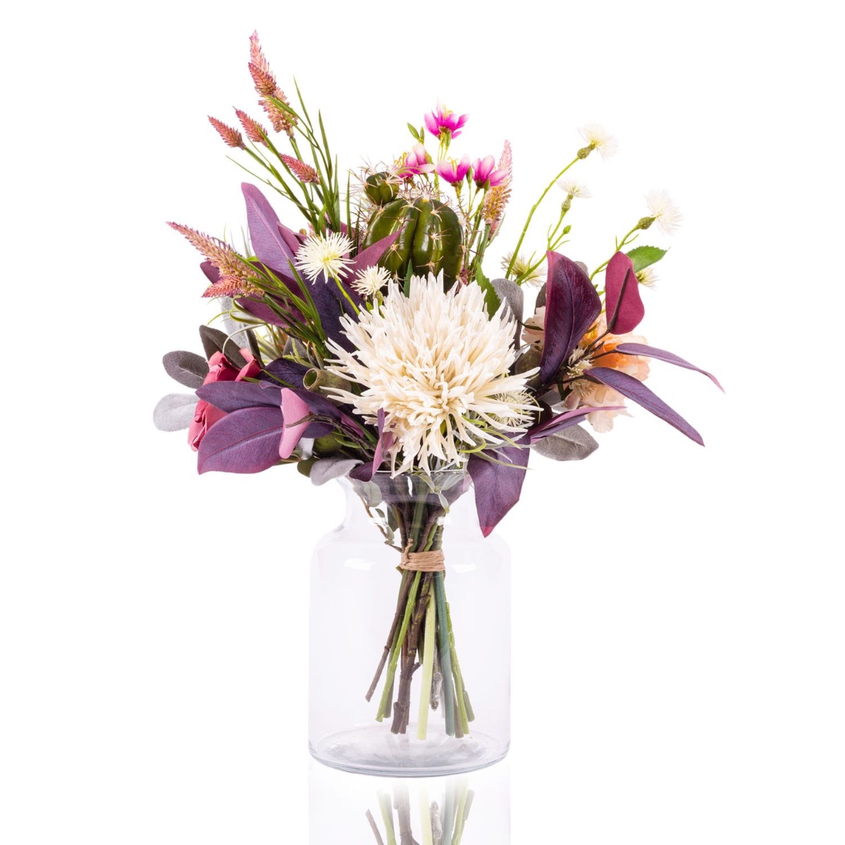 Künstlicher Blumenstrauß KALOU mit Kaktus, violett-weiß-lachs, 45cm, Ø35cm