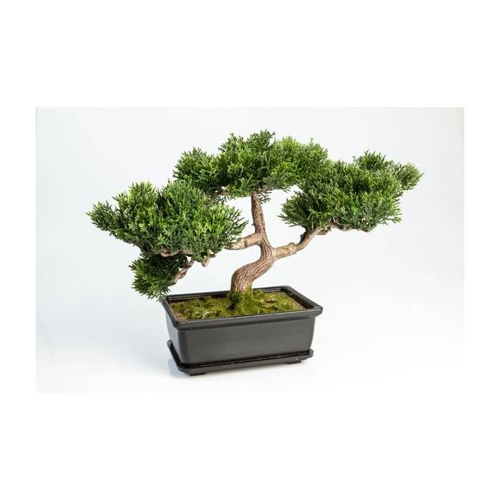 Künstlicher Bonsai Ceder mit ca. 120 Cedern Zweigchen. Der Kunstbonsai wird in einem schönem schwarzen Töpfchen geliefert und ist insgesamt ca. 23 cm groß.