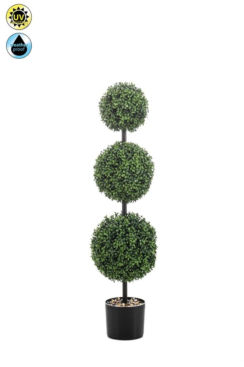 Künstlicher Buchsbaum 3er Kugel TOM, Dekotopf, crossdoor, Kunststamm, 100cm