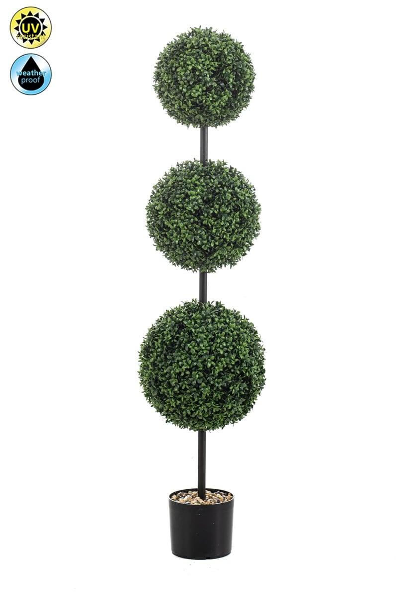 Künstlicher Buchsbaum 3er Kugel TOM, Dekotopf, crossdoor, Kunststamm, 125cm