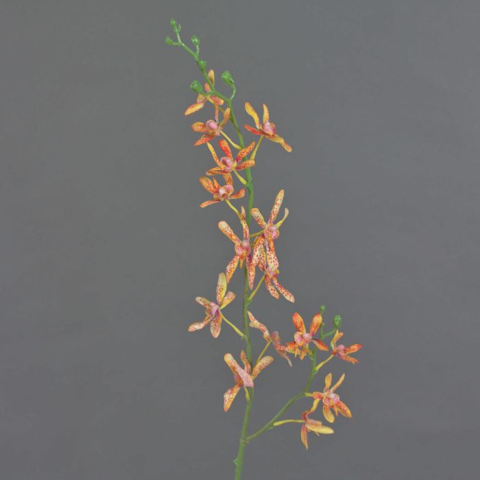 Künstlicher Cattleya Orchideenzweig TRASSA, orange-gelb-rot, 80cm, Ø4-8cm