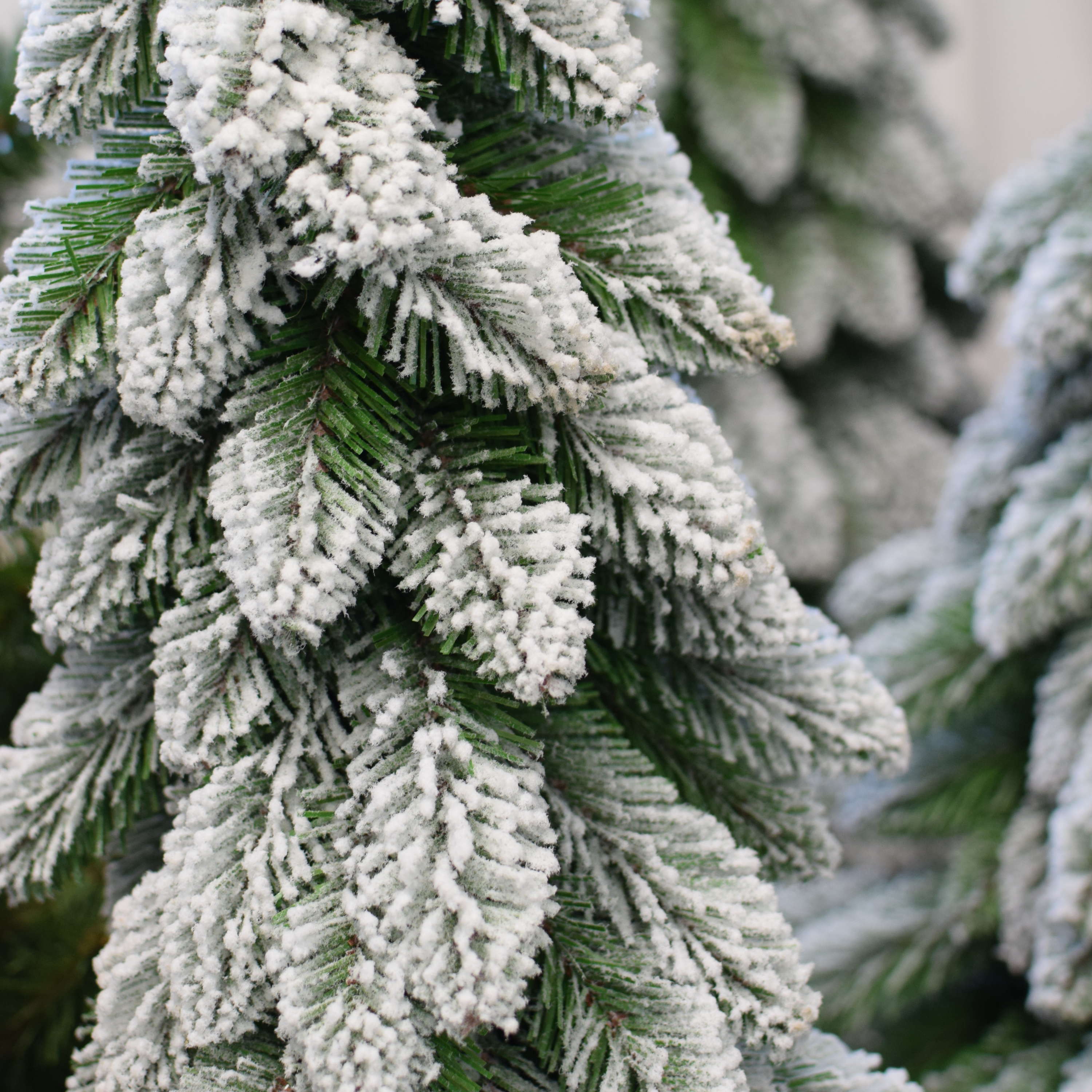 - mit ca. 200 Nadeln aus hochwertigem PVC-Material, Nadelfarbe grün und mit Kunstschnee beschneit, bei einer Länge von ca. 1-2 cm wirken diese sehr dicht