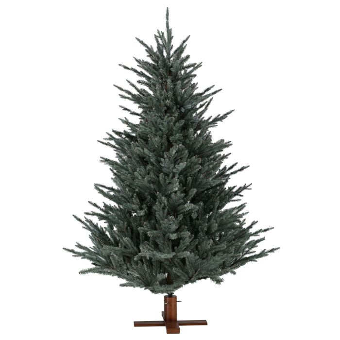 Plastik Tanne/Weinachtsbaum RIVERSIDE SPEED in Farbe Blau mit Holzständer besteht aus PE/PVC Nadeln. Der ca. 210 cm hohe Christbaum hat einen Durchmesser von ca. 140 cm und eignet sich als Deko für das heimische Wohnzimmer oder für Restaurants, Schaufenster, Messestände, usw.