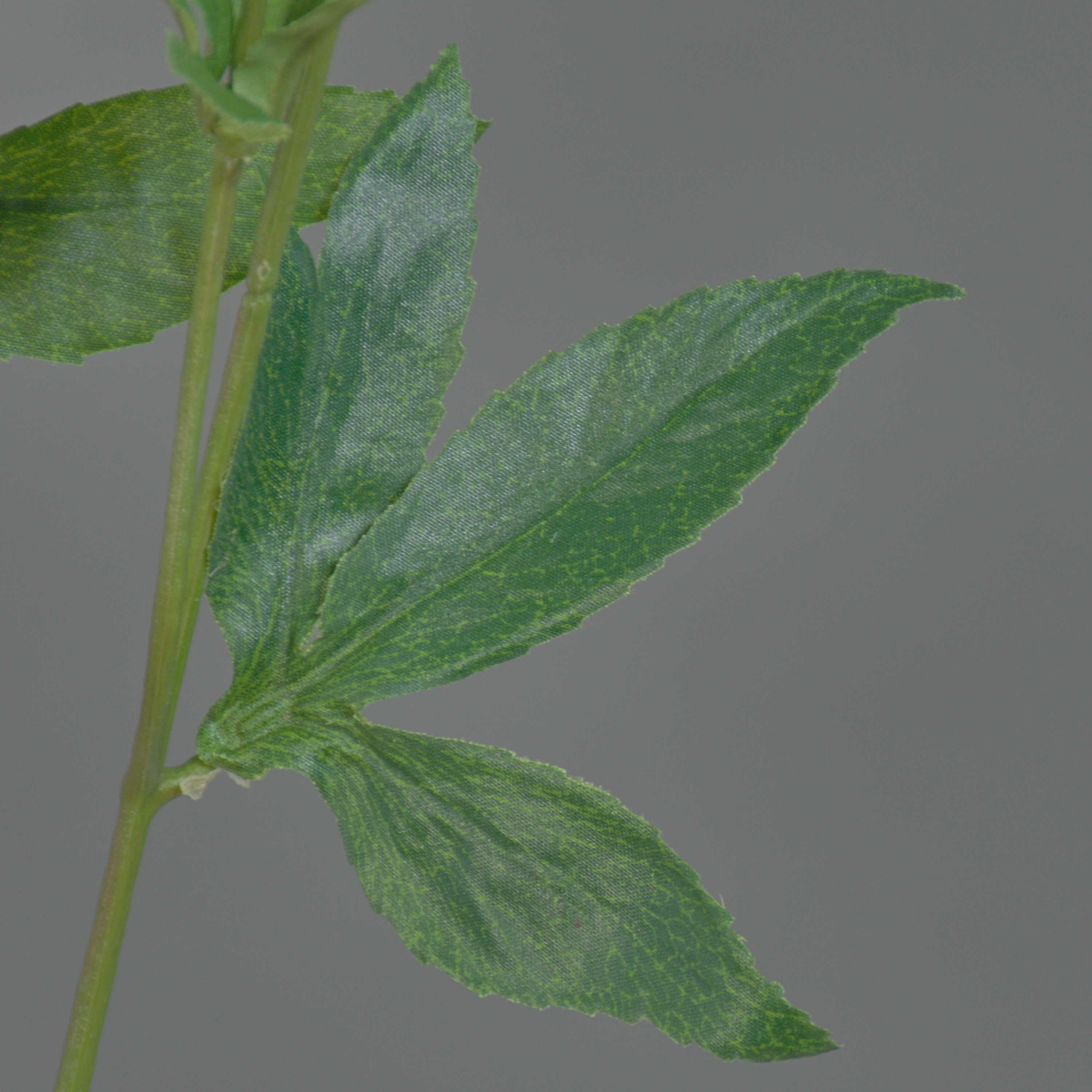 - Mit ca. 7 Textilblüten, 2 Knospen und 11 Blattzweigen