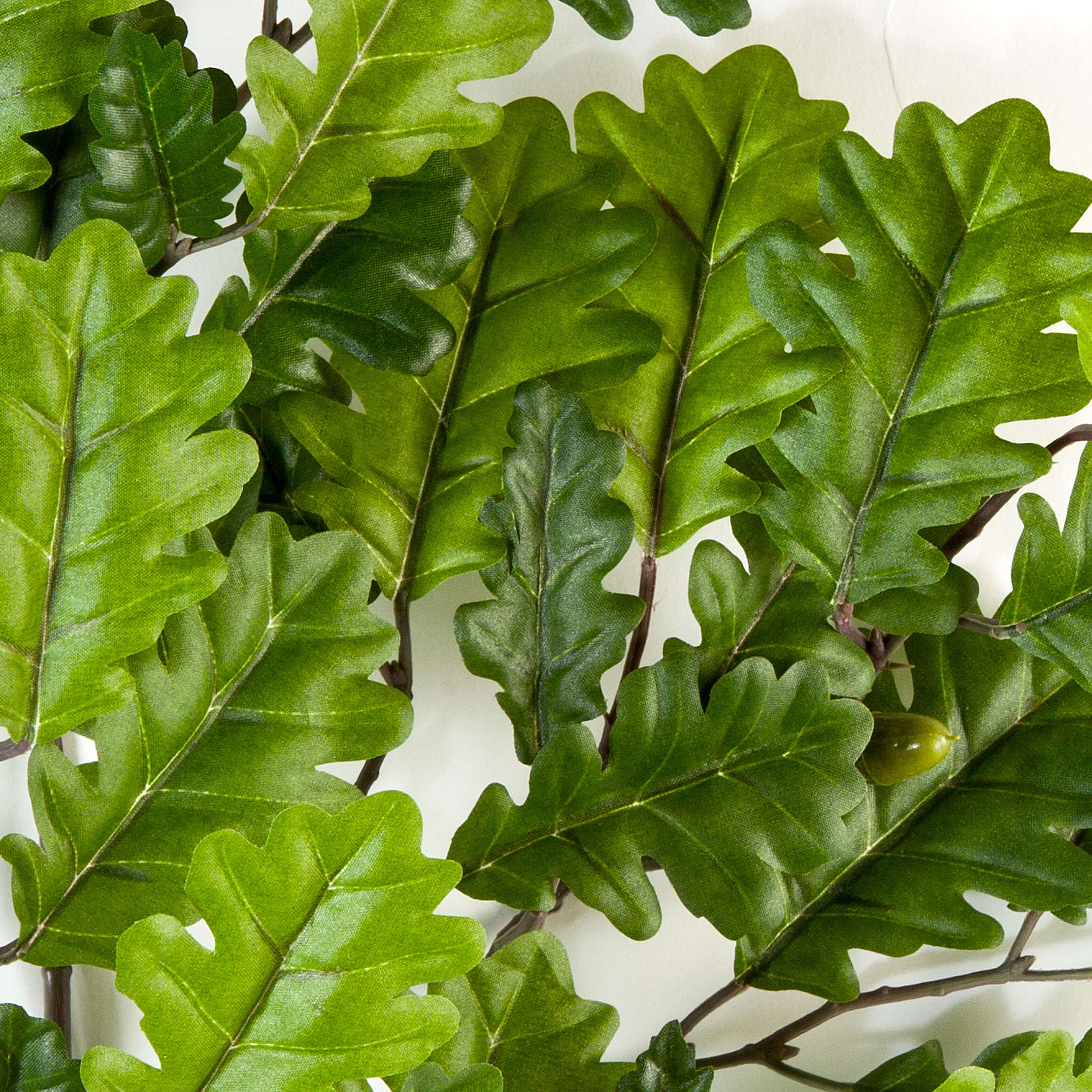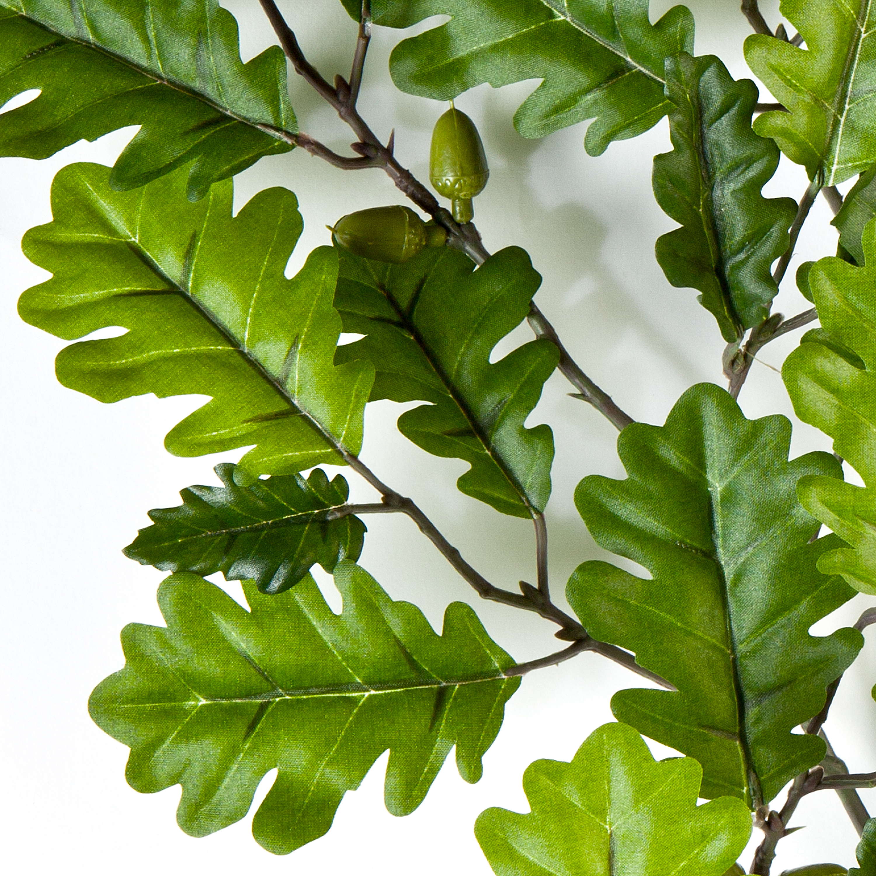 Der Kunst Eichenblattzweig JANIK hat 8 Eicheln und ca. 55 Blätter in verschiedenen Grüntönen. Mit der Länge von ca. 60 cm und seinen Blättern in typischer Eichenform schmückt der Kunstzweig jedes Schaufenster.