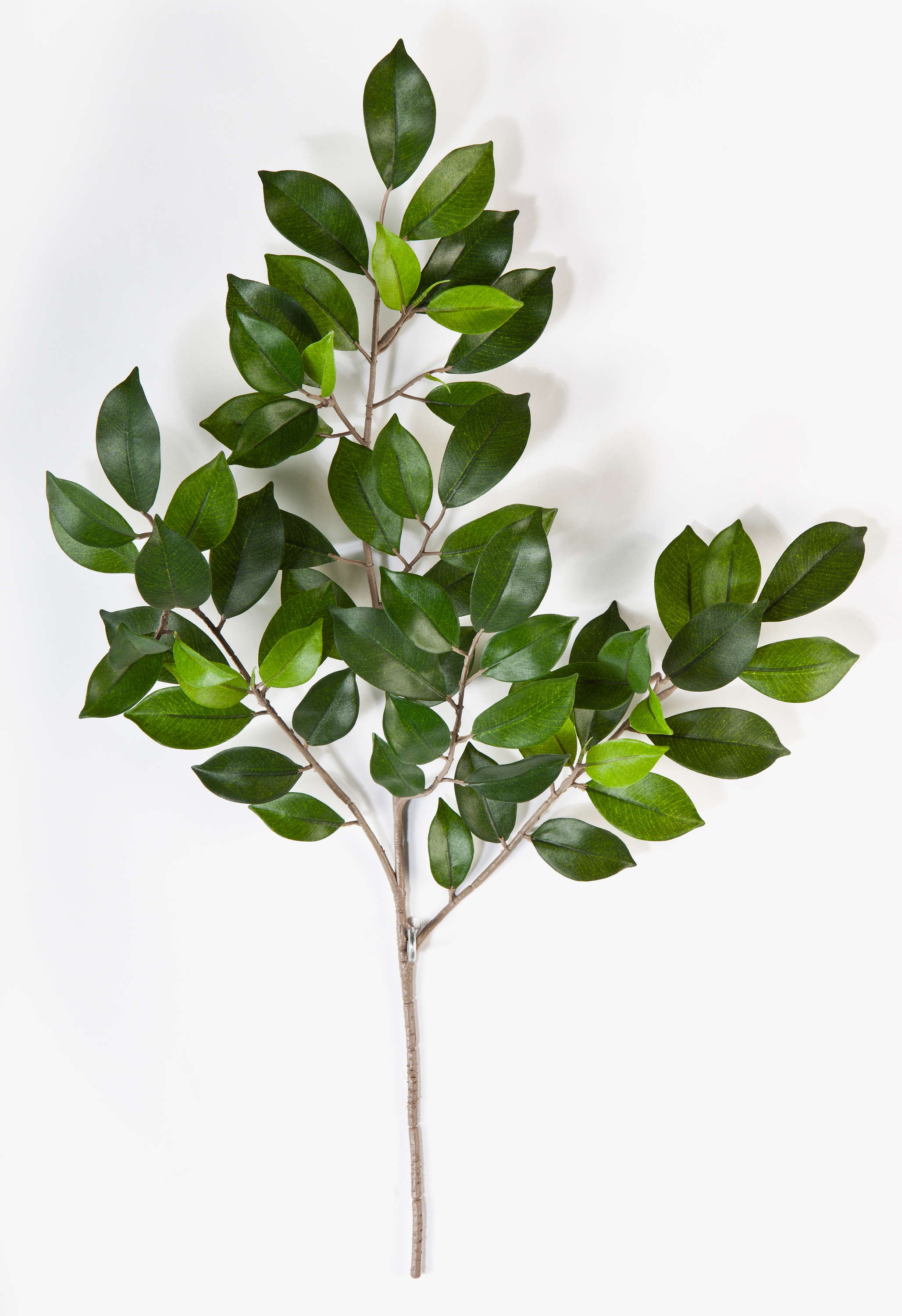 Kunstzweig AJITH überzeugt durch sein edles, dezentes Aussehen. Die Blätter des ca. 45 cm großen, künstlichen Zweigs sind mit fein gearbeiteten Maserungen versehen und elegant geschwungen.