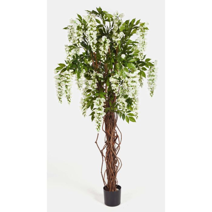 Der Kunstbaum Goldregen (Wisteria) ARIANA passt mit der Blütenfarbe weiß beilspielsweise in jeden Wintergarten. Der bunte Dekobaum hat ca. 35 Blüten und getopft eine Höhe von insgesamt ca. 180 cm.