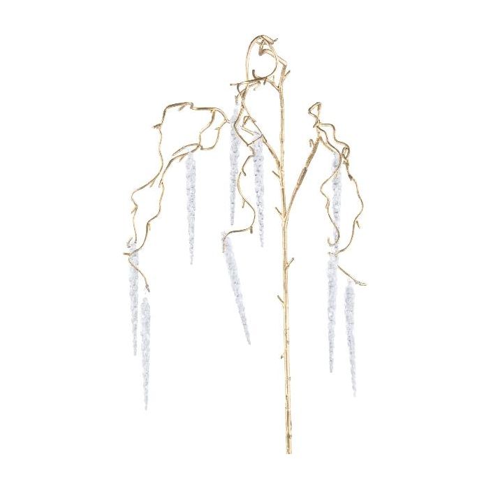 Künstlicher Haselnuss Zweig MONDEL mit Eiszapfen, hängend, gold, 115cm