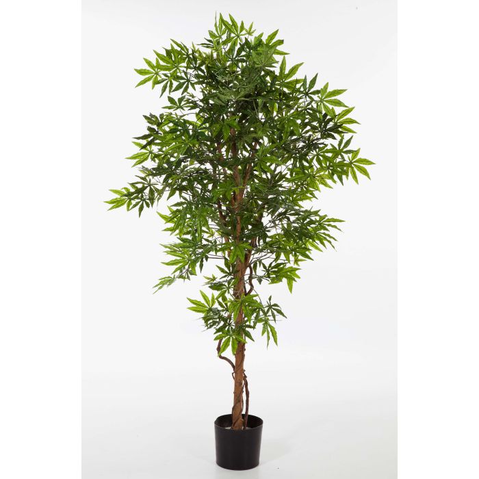 - Dichte Form mit ca. 740 grünen Textilblättern in typischer Ahornform, zarter Stamm