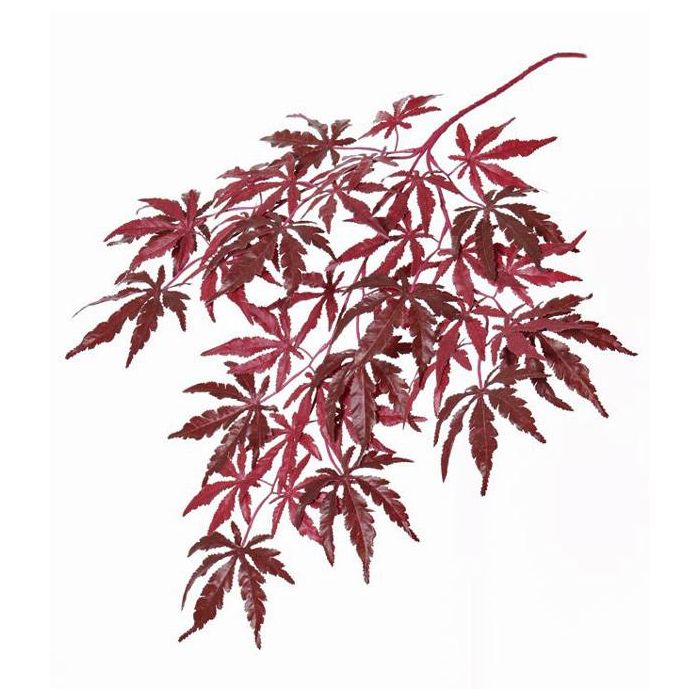 Der künstliche Zweig DIRK ca. 70 cm lang ist mit ca. 35 gezackten, sternförmig angeordneten Blättern in Farbe bordeaux.