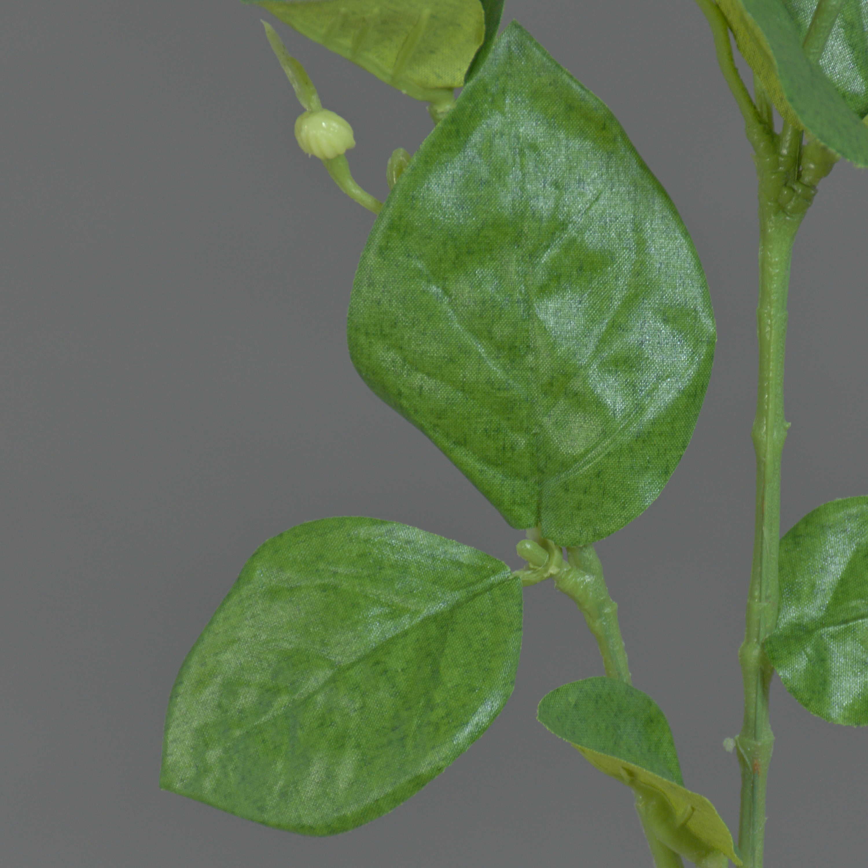 - Ca. 14 Textilblätter und grüner biegbarer Kunststoff Stiel mit Verzweigungen, Stiellänge ca. 33,5 cm bis zur Verzweigung