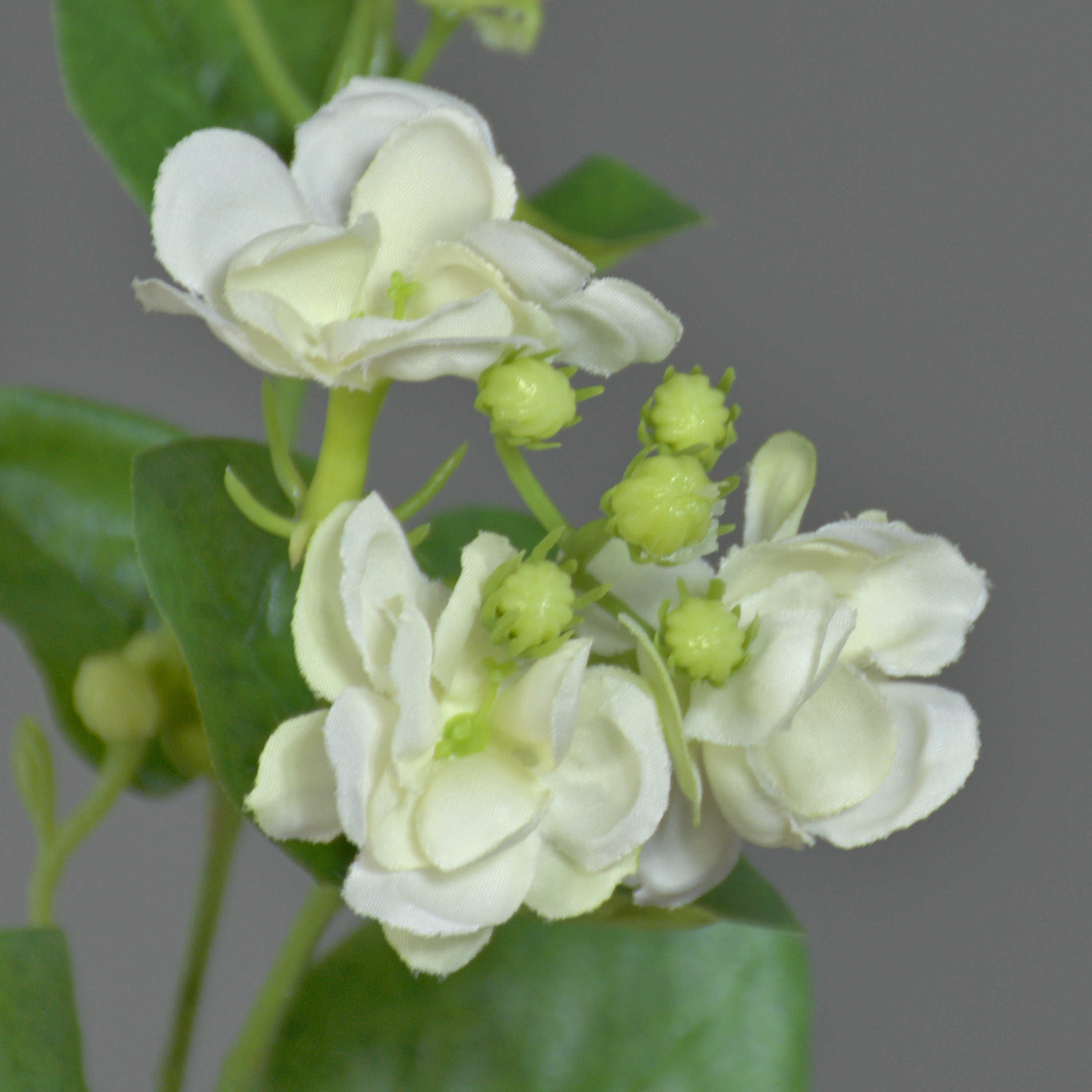 Der künstliche Jasmin-Zweig SINJA in weiß-grün hat einen Blütendurchmesser von ca. 4 cm. Durch Ihre Verzweigungen und Ihre kunstvoll gestalteten Blätter kommt diese in einer Bodenvase gut zur Geltung.