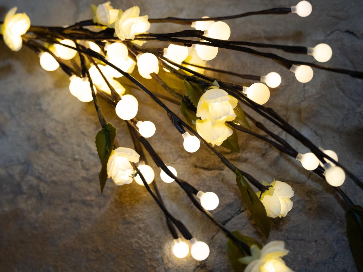 Künstlicher Kamelie Zweig LIDIJA, LEDs, weiß, 50cm