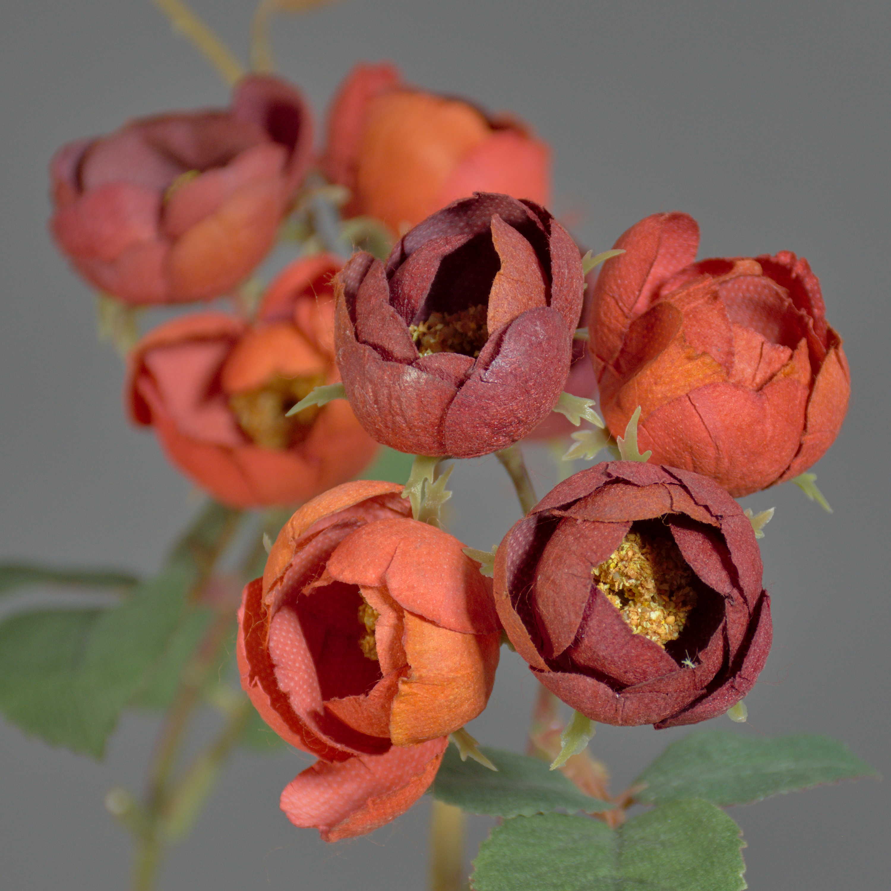 Künstlicher Kohl-Rosen Zweig LORRAINE, Eco Collection, rot-orange, 60cm, Ø3cm