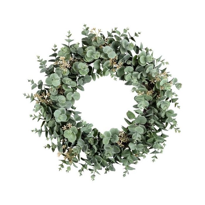 Künstlicher Kranz Eukalyptus LEMTI mit Blüten, grau-grün, Ø40cm