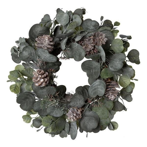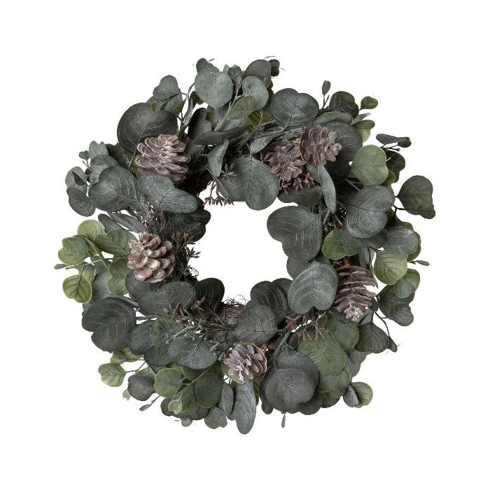 Künstlicher Kranz Eukalyptus RINPO, Zapfen, grau-grün, Ø35cm