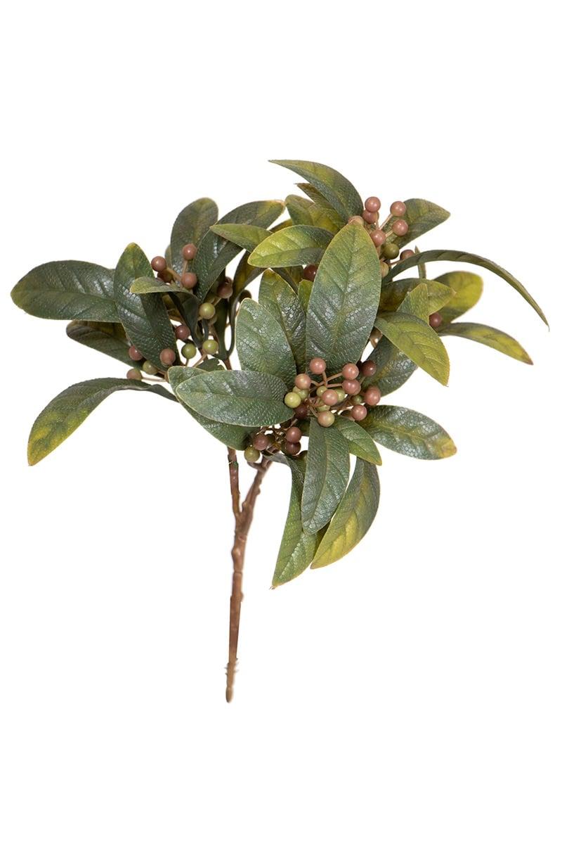 Künstlicher Lorbeerstrauch KAMINA mit Beeren, Steckstab, grün-braun-20cm