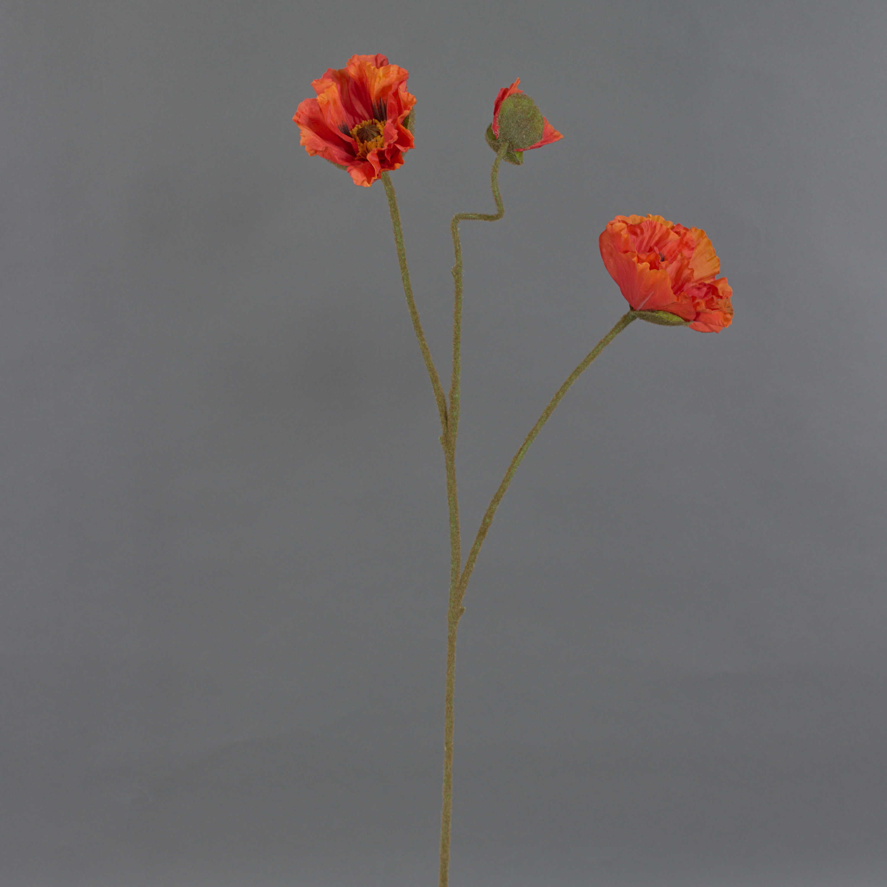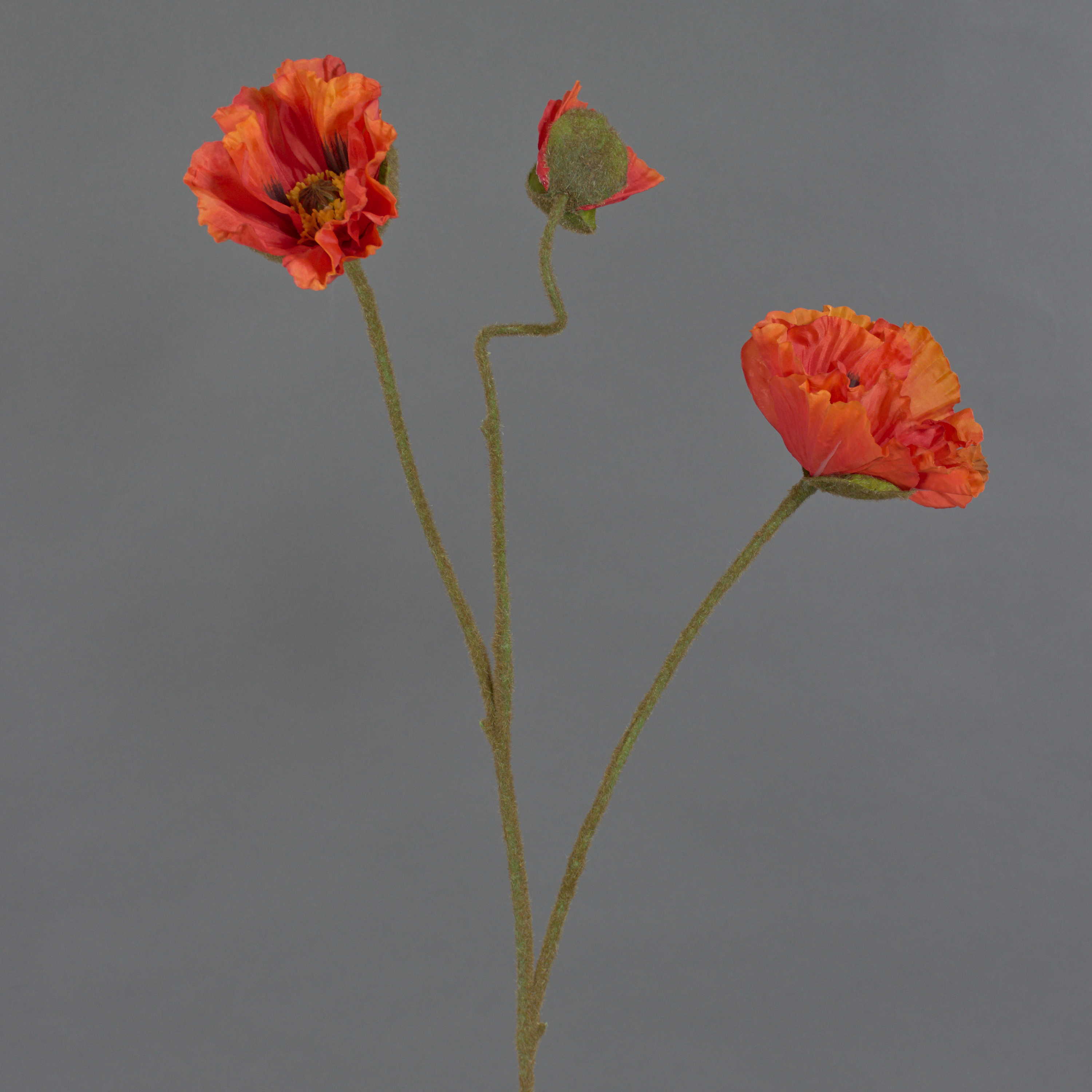 Künstlicher Mohnblumenzweig PEJA, orange-rot, 90cm, Ø11-13cm
