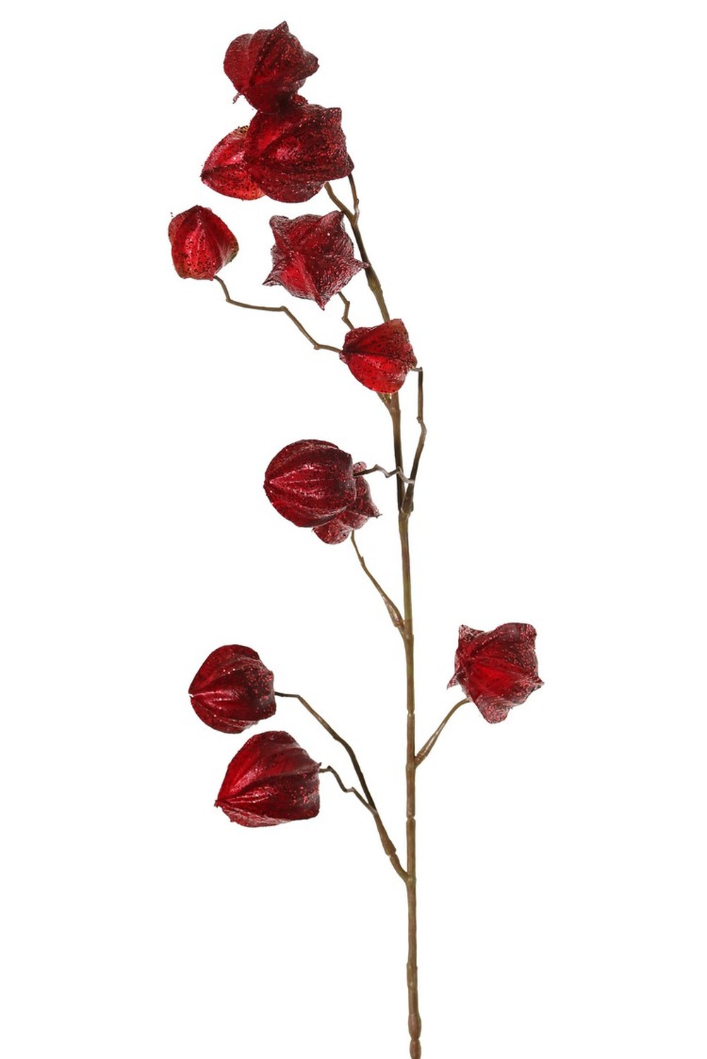 Künstlicher Physalis Zweig AINOS, Früchte, Glitzer, burgunderrot, 80cm