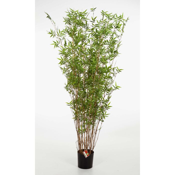 - Buschige Form mit ca. 1560 kleinen Textilblättern, viele dünne Bambusrohr-Echtstämme