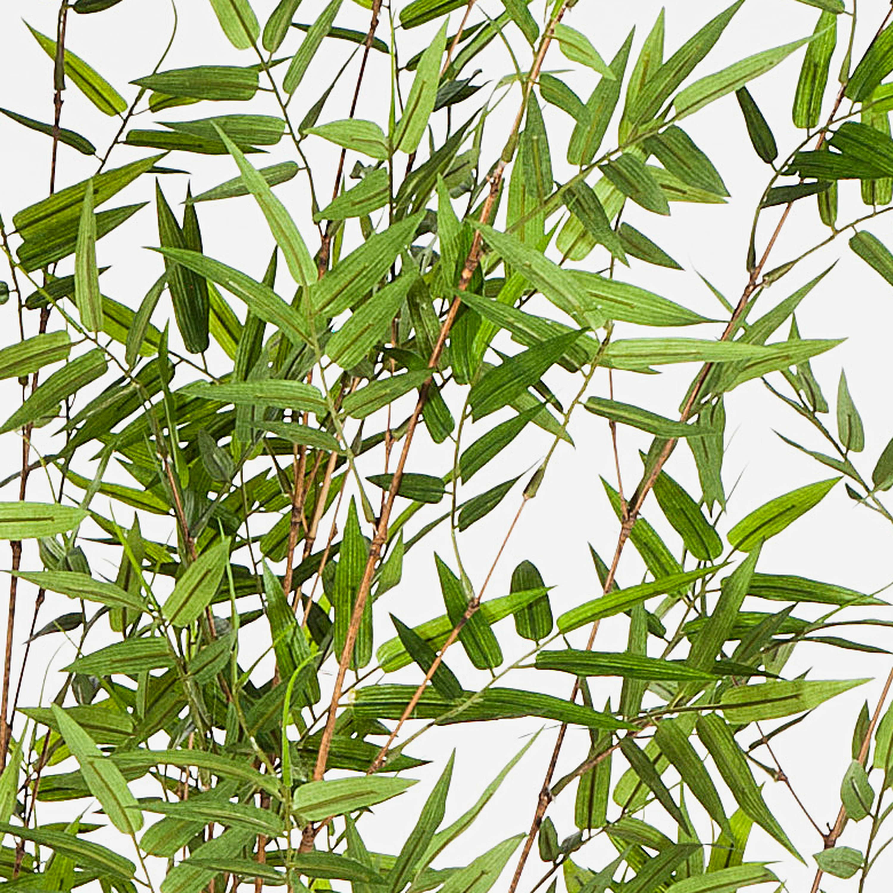 - Buschige Form mit ca. 2400 kleinen Textilblättern, viele dünne Bambusrohr-Echtstämme