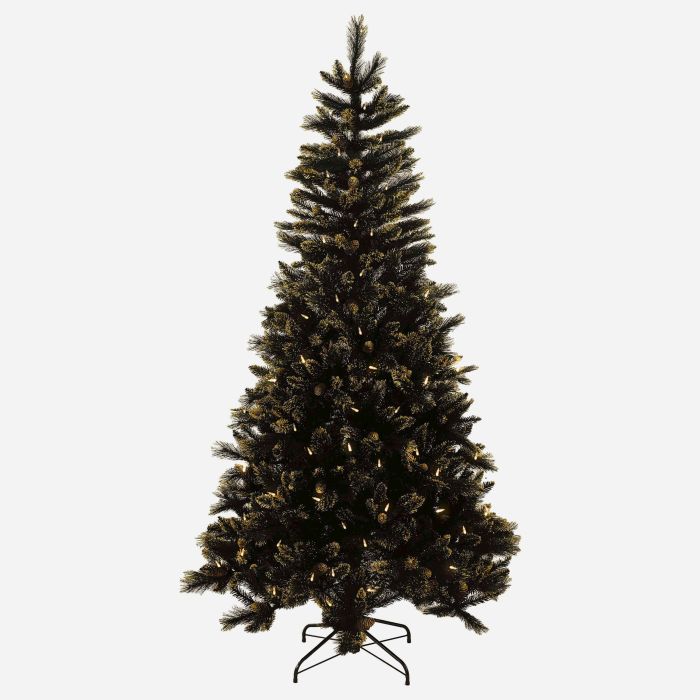 - Biegbare Nadelzweige in schwarz Goldschimmer, mit echten Zapfen, LED Lichterkette mit 450 Lichtern