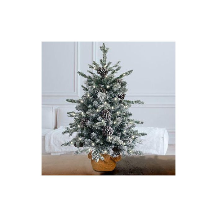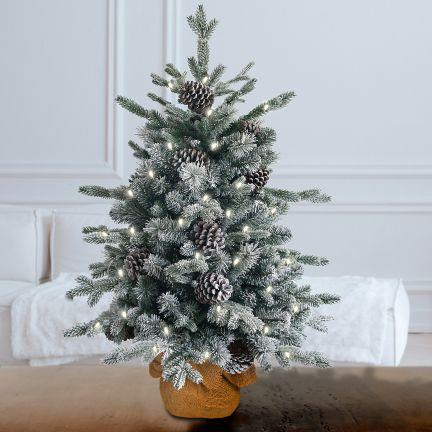 Künstlicher Tannenbaum LYNGDAL, beschneit, Zapfen, LEDs, Jutesack, 60cm, Ø40cm