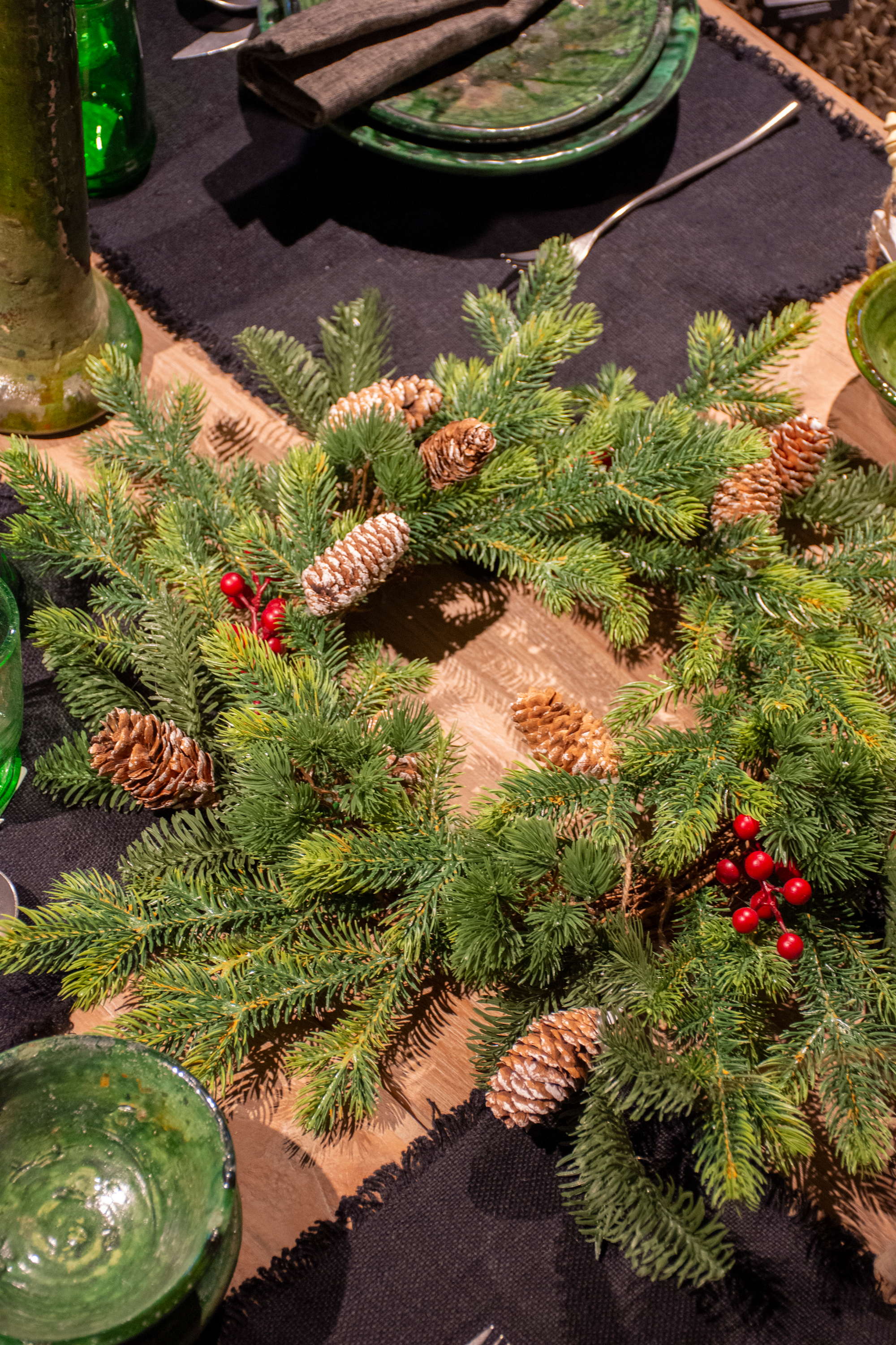 - Nadelzweige in grün, mit roten Beeren und echten Zapfen