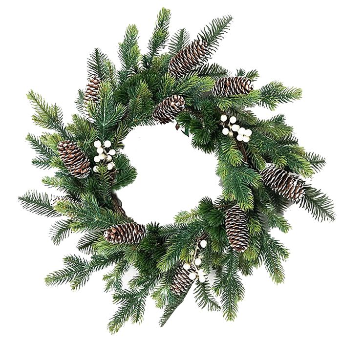 Künstlicher Weihnachtskranz NARVIK, Beeren, Zapfen, grün-weiß, Ø50cm